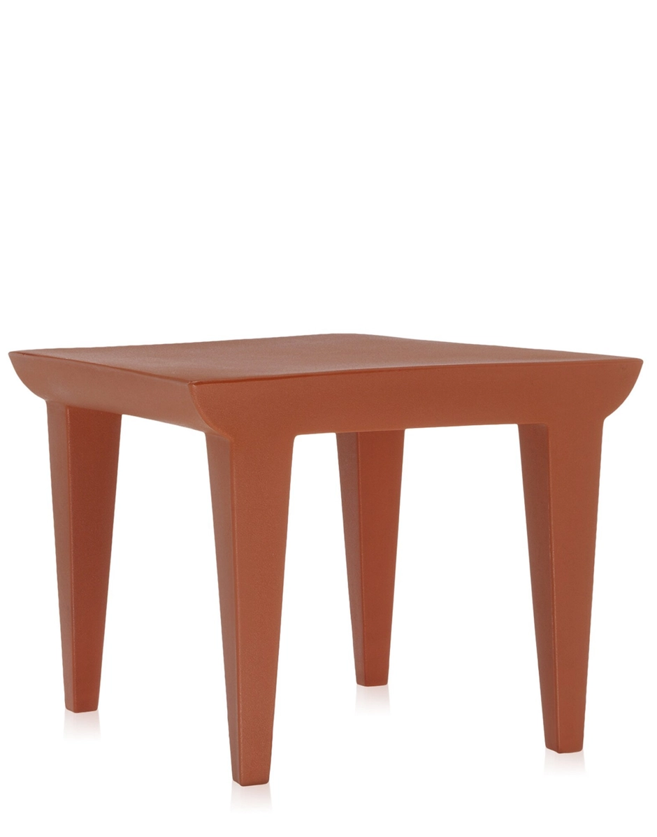 Bubble Club is the industrial sofa in which rotational moulding technology has enabled Kartell to mass produce. A large two-seater sofa, characterised by the soft line of the armrests which contrast with the more rational line of the backrest; an essential silhouette, reminiscent of “grandma's sofa”. Bubble Club joins the armchair and occasional table, made in the same finishes and colours, to become a real family, an "industrial lounge" for furnishing a garden, a poolside or a terrace.