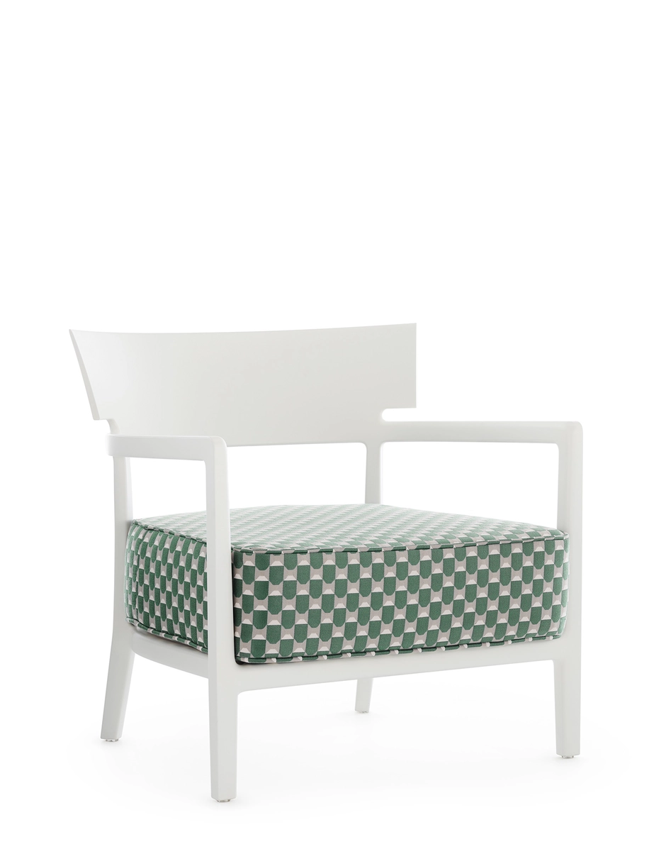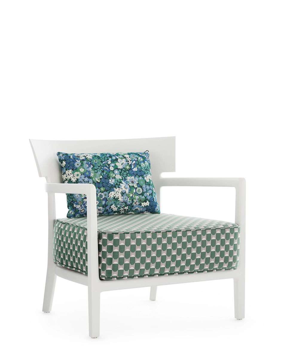 The Plastics sofa and Trix pouffe by Piero Lissoni and Philippe Starck’s Cara armchair will gain a new look thanks to the use of Liberty fabrics that are specially made for outdoor use. These fabrics add both style and functionality and guarantee strength and durability in outdoor applications. Available in two geometric patterns and one floral pattern, this new collection of outdoor furniture offers a unique mix of style and comfort, and lets you enjoy the summer in an elegant, relaxed fashion. In these new fabric coverings, each piece, from the sofa to the pouffe and armchair, becomes a precious addition to your outdoor life, contributing taste and refinement and offering a delightfully relaxed open-air experience. Available in sage, rust, beige, yellow and blue colour palettes.