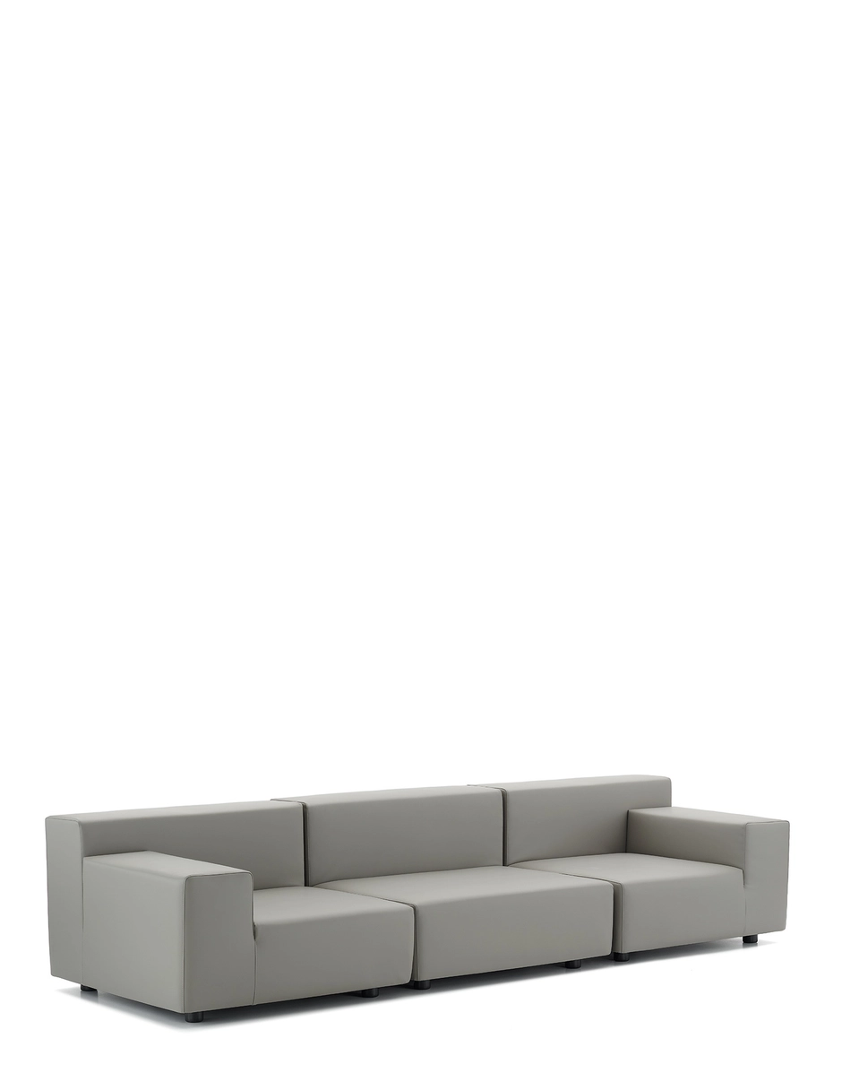 Plastic is the modular sofa with severe lines characterised by large cushions made of soft polyurethane upholstered in fabric. The Pop collection is completed by an armchair with the same features and by a pouf, which can be used individually or as part of an arrangement.
