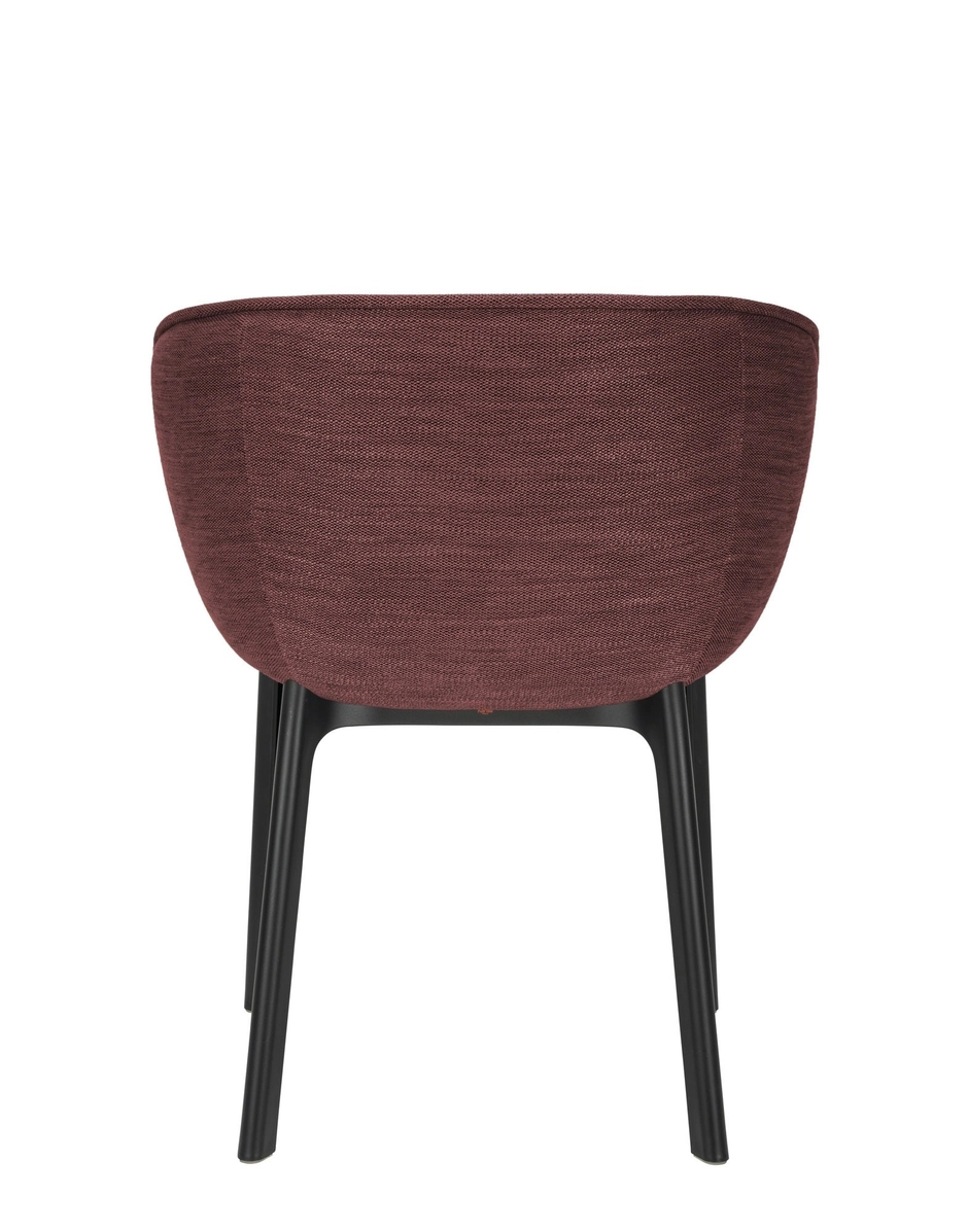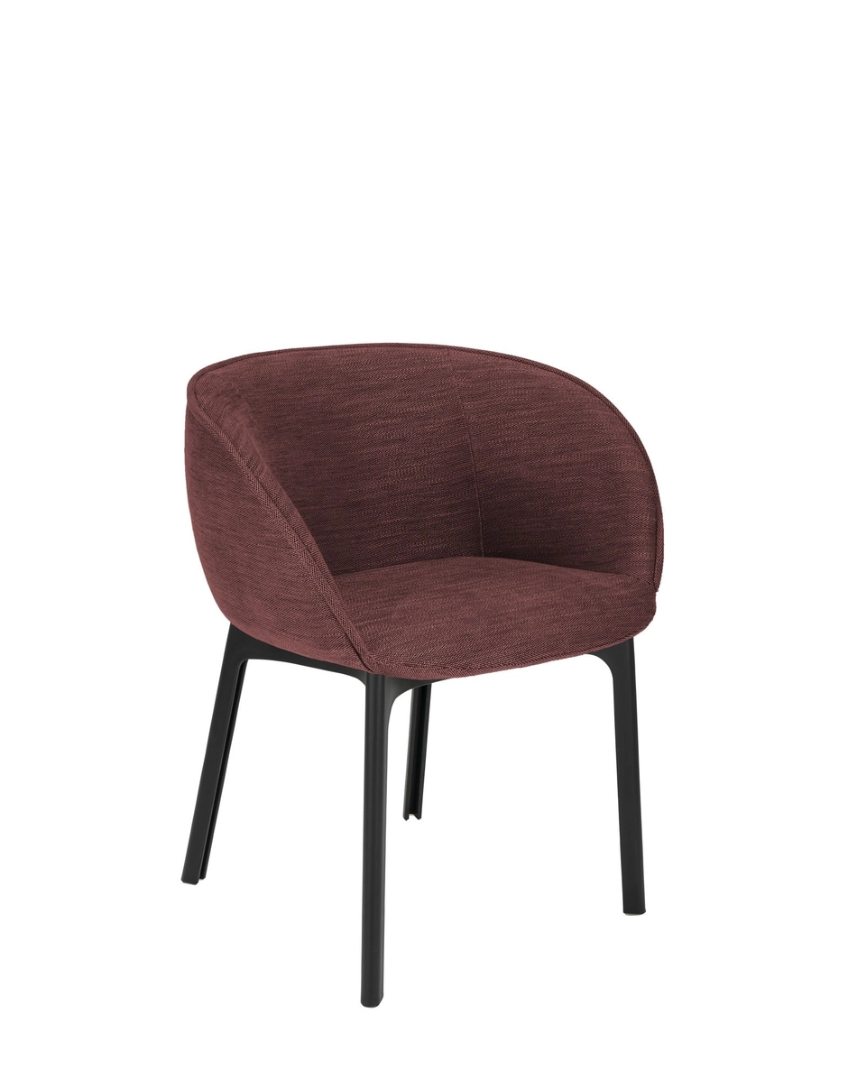 Charla combines elegance with sustainability thanks to legs made from recycled plastic. The frame comes in black, with upholstery in bouclé fabric or a special mélange fabric for the contract market