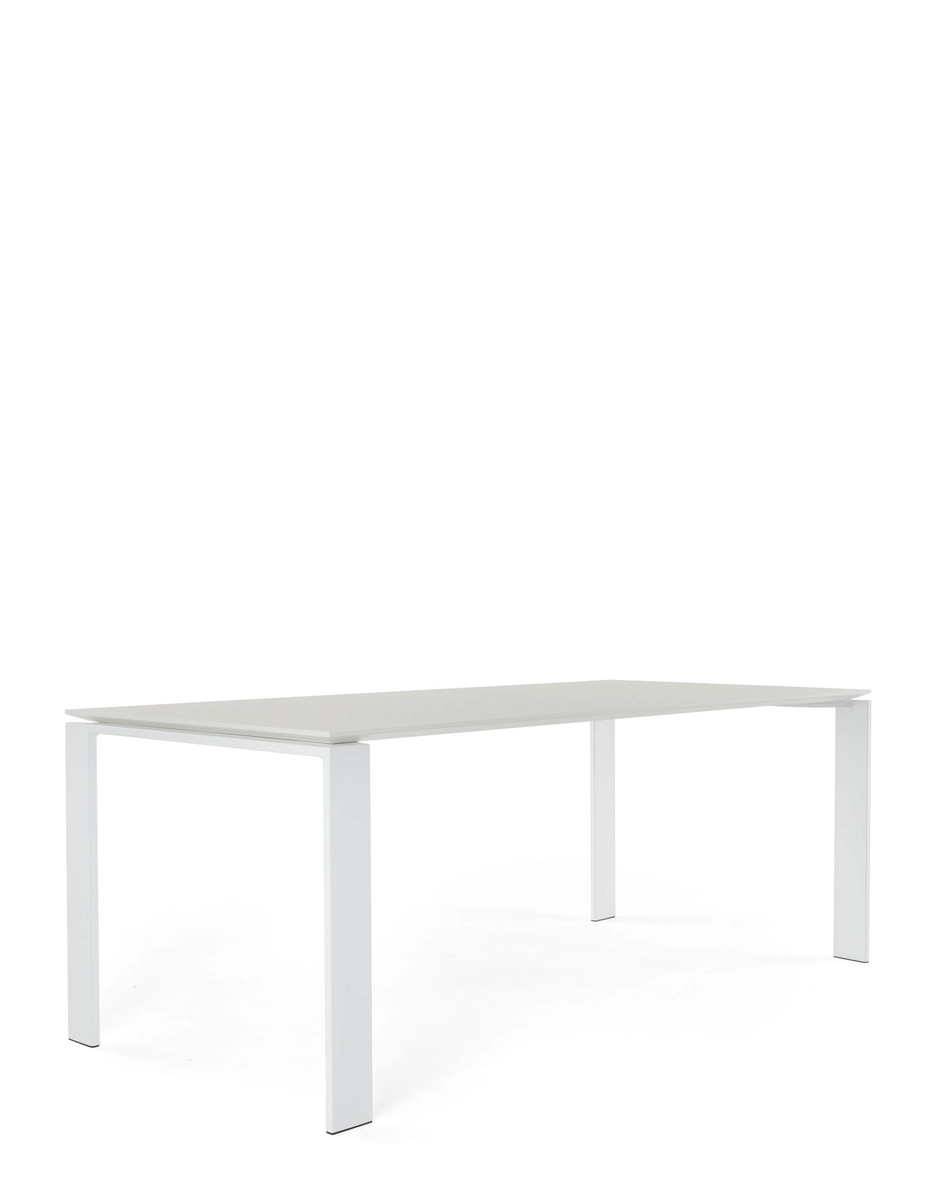 This functional and refined table also has a strict geometric design. Thanks to the elegant design solution, the position of the slim table top allows for the convenient positioning of drawers or storage furnishings for computer hardware. They can be placed side-by-side to form office workstations.