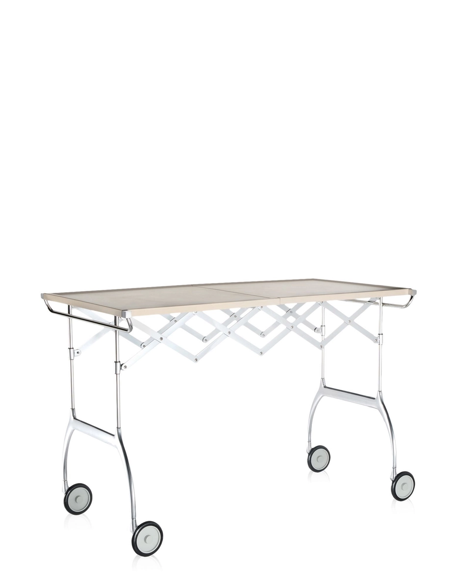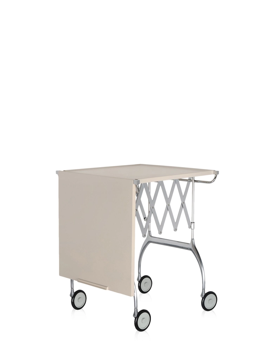 Besides being a practical trolley characterised by the successful combination of plastic and metal materials, Battista is proposed as an extensible and folding table, ideal for buffets and cocktails or for use as an occasional table.