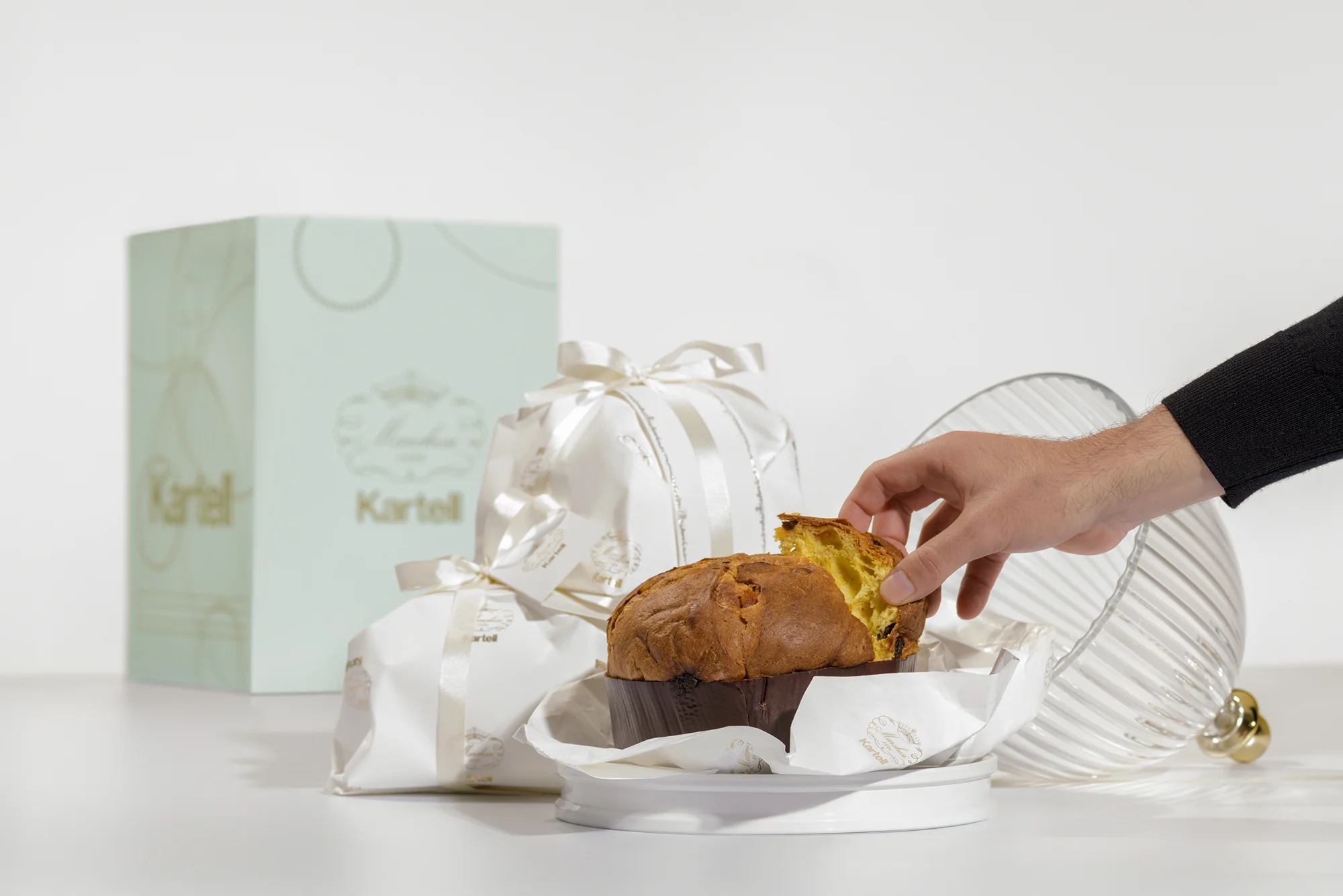 Together, the two brands give shape to a unique project that celebrates Christmas as a multisensory experience, made of shapes, flavors, lights, and materials. Beneath the cloche of La Coupole, designed by Fabio Novembre for Kartell—an object that pays homage to the majestic Italian domes, symbols of eternal beauty and shared intimacy—the Marchesi panettone is unveiled, prepared according to the ancient recipe and embellished by the mastery of its pastry chefs, led by pastry chef Diego Crosara. The transparency and lightness of the design dialogue with the richness and softness of the dough, in a play of balance that tells the story of the beauty of Italian craftsmanship. The heart of the collaboration is precisely the chest of La Coupole, which guards the panettone like a treasure, a centerpiece-sculpture that illuminates the table and prolongs its magic far beyond the holidays. Not just a simple container, but a design gesture that celebrates the ritual of conviviality and transforms it into an aesthetic act.
