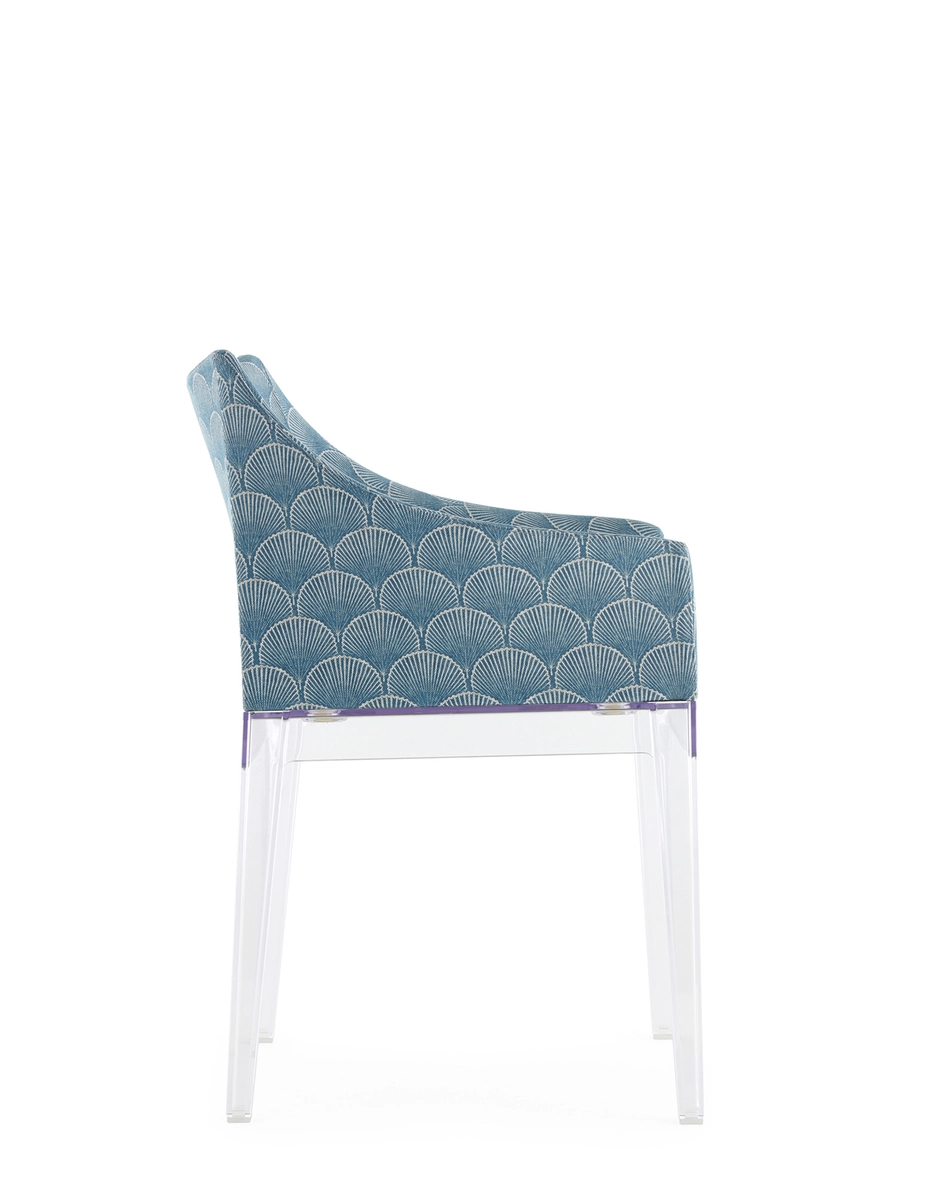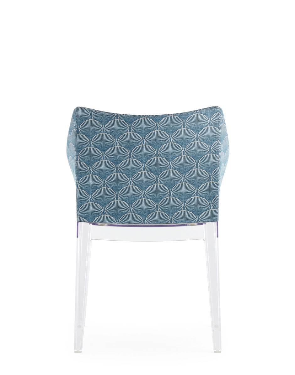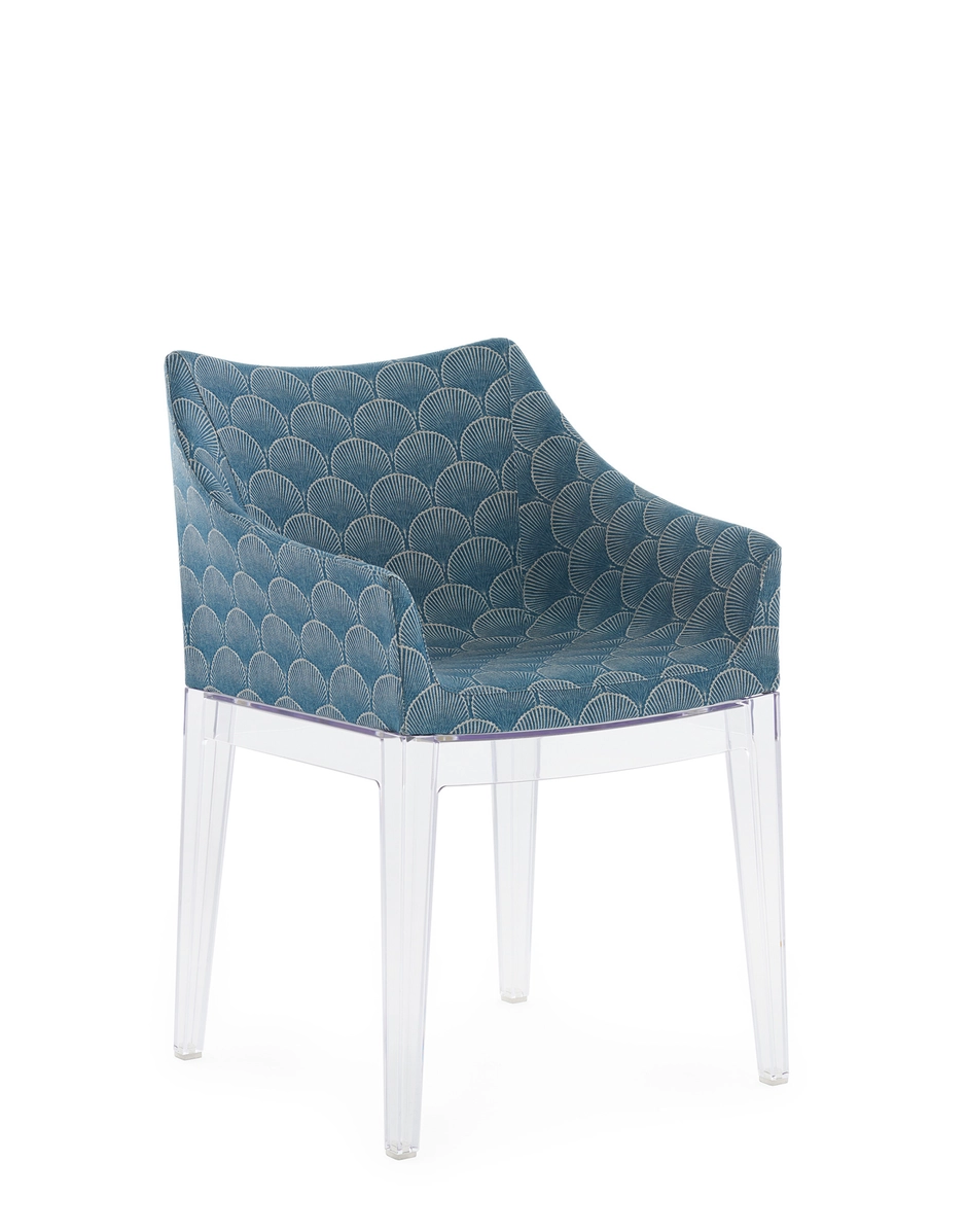 Madame, the famous by Philippe Starck is presented in a captivating combination of the Liberty “Fanfare” fabric with the new leg structures, proposed in the rich and enveloping tones of Mustard, Red and Blue, which are combined with the black and transparent version. A sublime encounter between tradition and modernity, which transforms every environment into a timeless work of art. “Fanfare”, is an extraordinary fabric inspired by a precious archive fragment dating back to the 1880s, characterized by a sophisticated geometric motif of Asian-style fans. The refined mix of colors and the particular weave of the material give this pattern a timeless elegance, making it perfect for reinterpreting the armchair