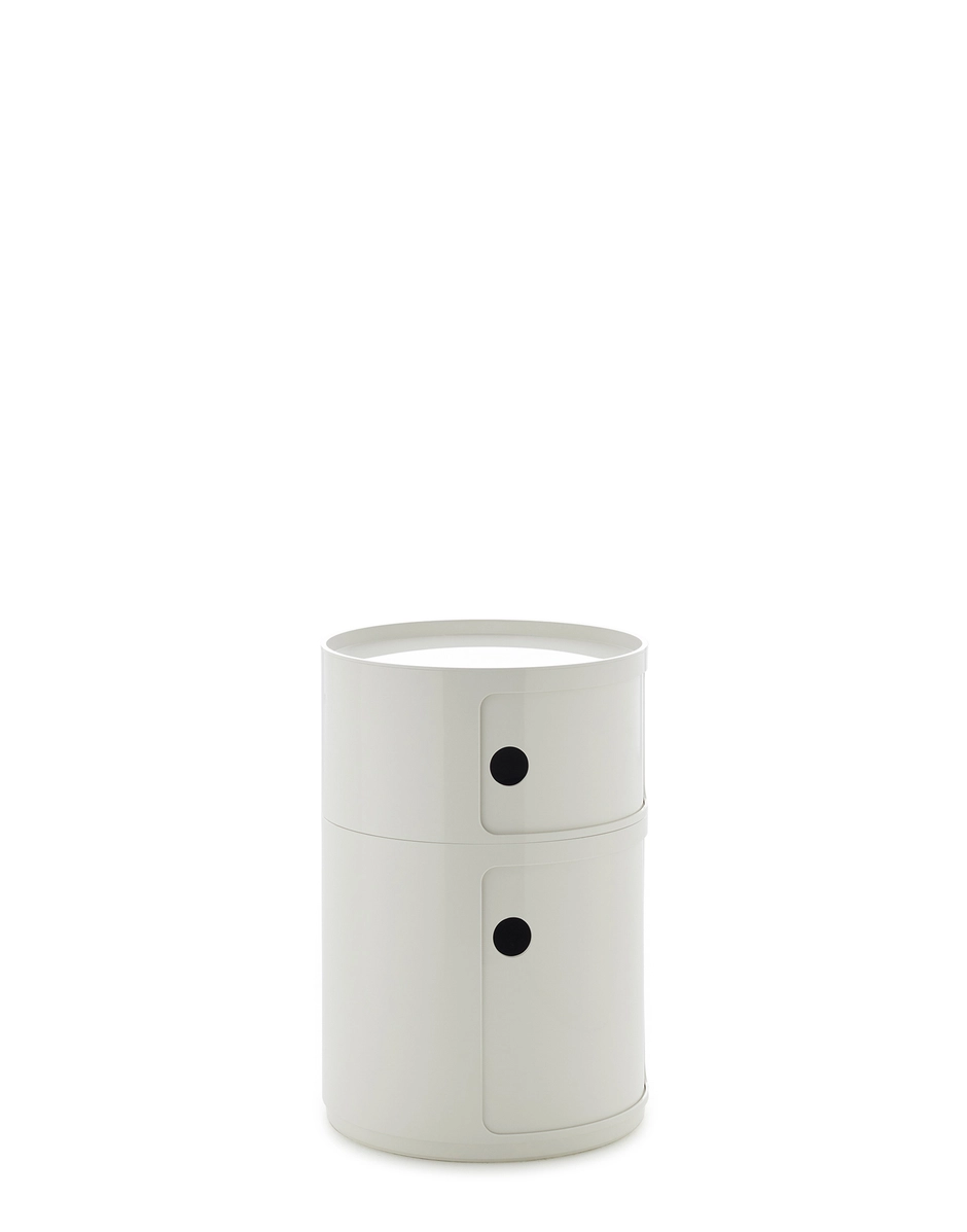 Présentés ici dans une version ronde de 42 cm, les Componibili d’Anna Castelli Ferrieri apparaissent sous un jour totalement nouveau. Une nouvelle apparence obtenue en utilisant un nouveau moule industriel qui met en valeur sa qualité et son esthétique. La palette s’enrichit de coloris déjà proposés pour la version de 32 cm, auxquels s’ajoutent des nuances inédites, où le style contemporain dialogue avec d’élégantes références au passé. Disponible avec 2 ou 3 éléments indissociables, cette nouveauté représente une évolution technique prête à valoriser un classique du catalogue. Disponibles dans les couleurs : bordeaux, gris tourterelle, orange, bleu pétrole, vert et blanc