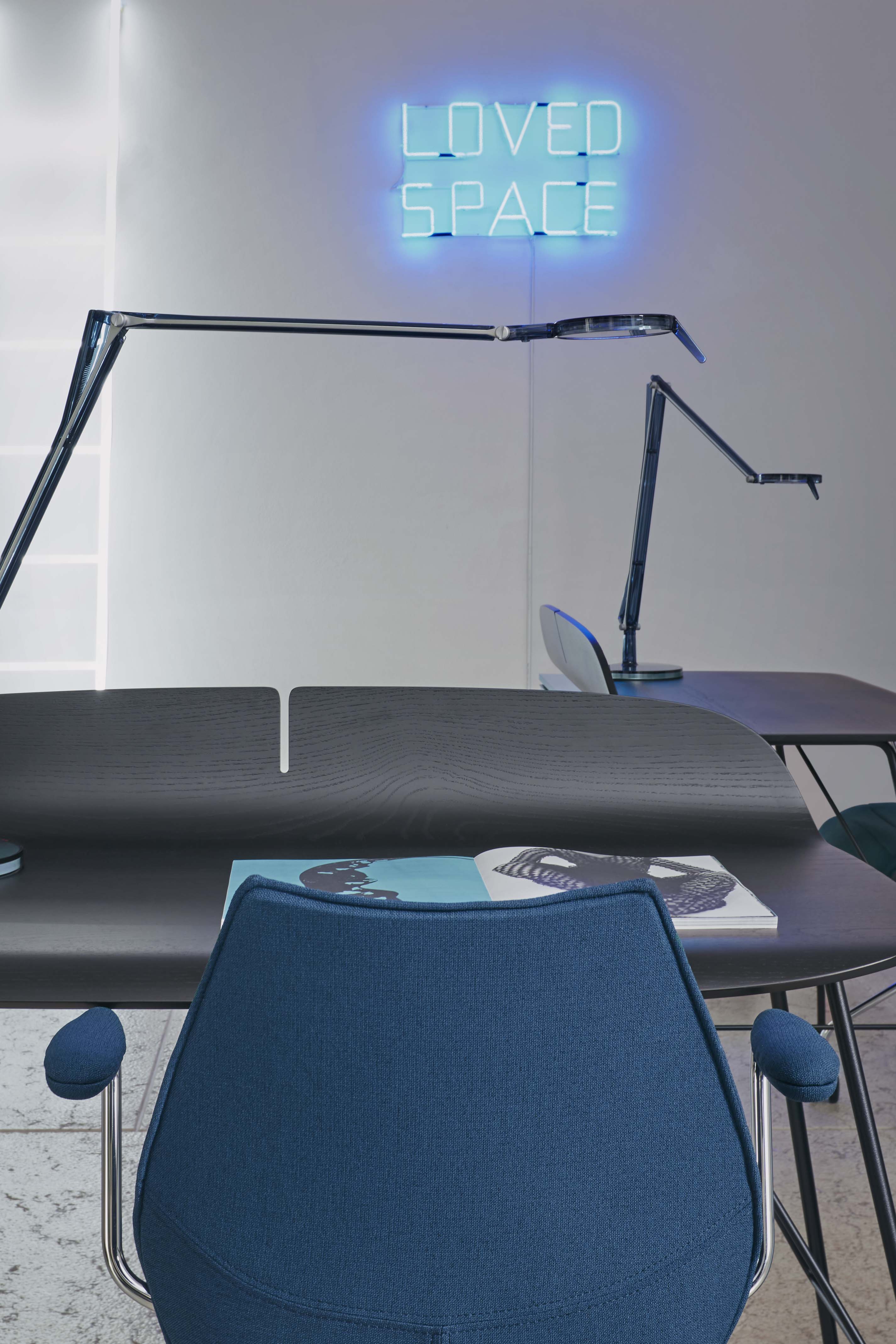 EARL OF WOOD est le nouveau bureau au design essentiel. Son plateau multifonctionnel en bois cintré répond aux besoins des mondes Office et Habitat. Les formes du bureau sont incurvées au niveau des bords inférieur et supérieur pour vous offrir une libert