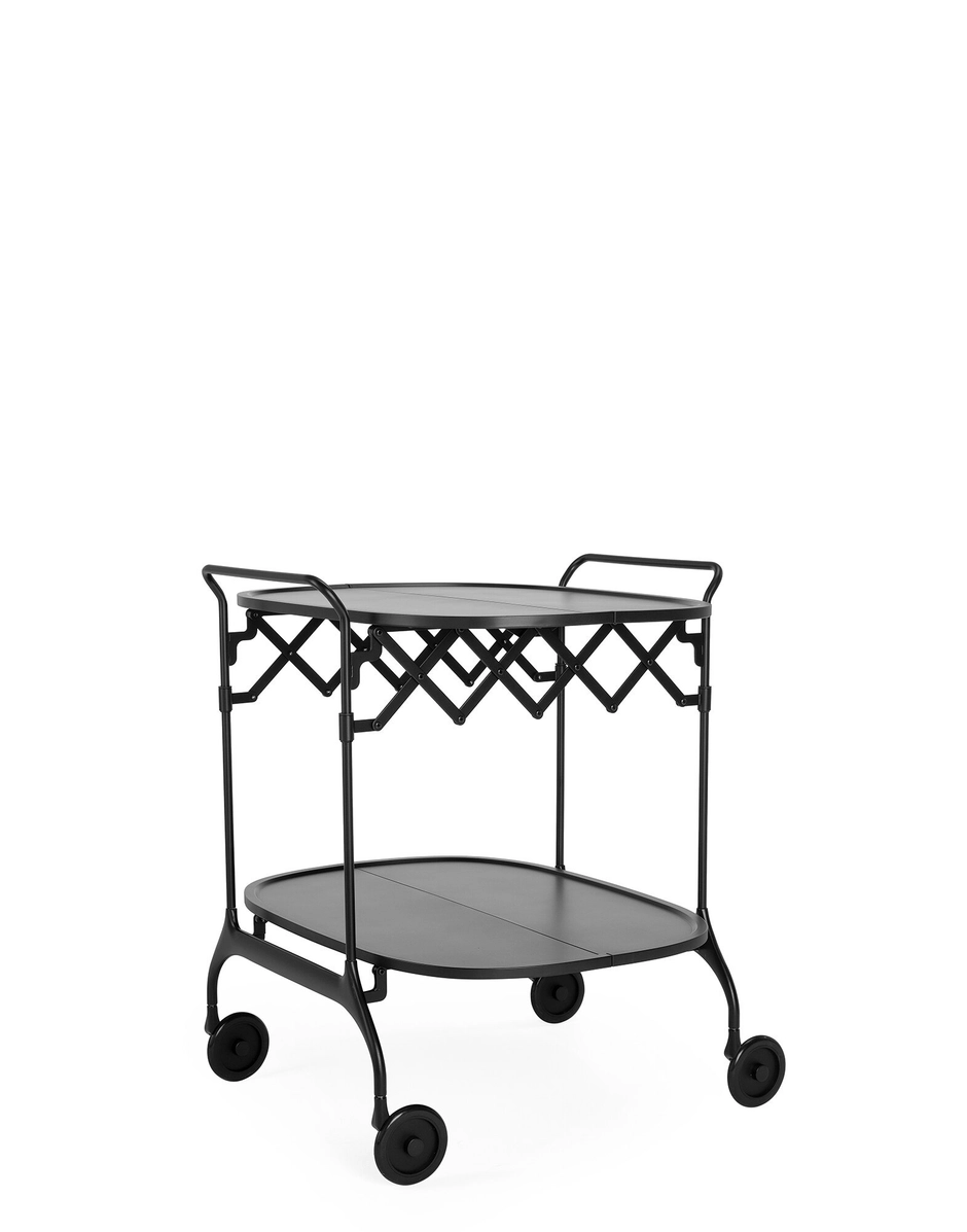 Le chariot Gastone se présente avec une nouvelle texture, mate et douce au toucher, dans les versions en blanc, noir, crème et bordeaux. Pliant, léger et facile à déplacer, Gastone est depuis 30 ans l’allié parfait de votre séjour. Extensible, il est également idéal pour les buffets et apéritifs, ou bien en tant que table basse.