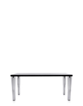 The TopTop table line is distinguished by its leg which can be either a round or square transparent section with a multi-faceted surface and metal core.