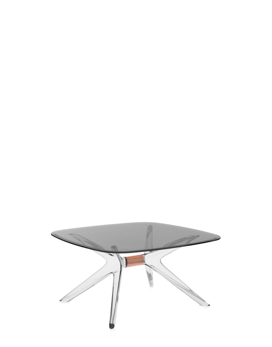 Blast is a side-table (available in square or rectangular versions with rounded corners) with transparent base and tops. The design is a development of the Sir Gio table, with the opportunity to associate and combine different coloured bases and tops. The central core of the base is available in chrome or copper metallic finishes.