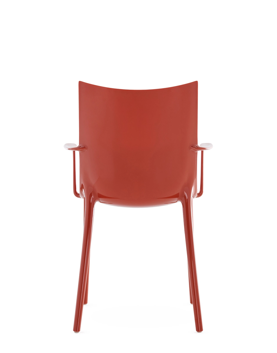 Philippe Starck elevates us to new heights with the H.H.H. - HER HIGHEST HIGHNESS chair. With unparalleled elegance and graphic impact, H.H.H. defines the very essence of the human interacting with it, compelling one to take a stance. It transcends the mere notion of sitting, transforming every moment spent upon it into one of true majesty. The frame is crafted from recycled material, and the seat is available in various finishes: recycled leather with green tanning treatment, in black and tan colours, eco-friendly texture sourced partly from recycled material and partly from renewable sources in black and tobacco colours, and in super glossy finish in white, black, burgundy, rust, mustard, blue and green.