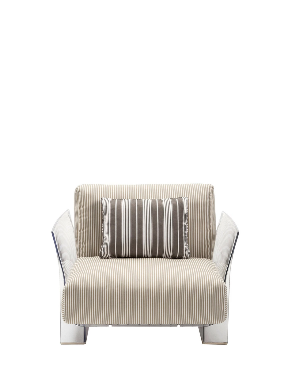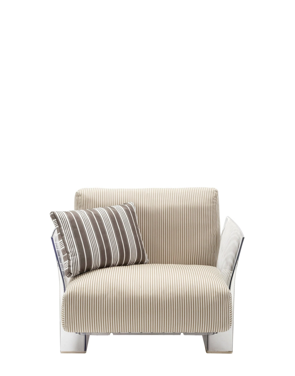 Pop outdoor is the modular sofa with evanescent profiles characterised by large seat and backrest cushions which make it soft and comfortable, made with fabrics conceived specifically for outdoor use. The Pop collection is completed by an armchair with th