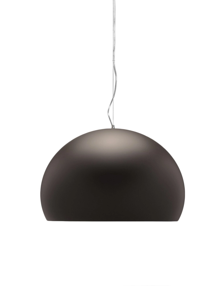 FL/Y est une lampe à suspension aux lignes essentielles. La transparence particulière du matériau et la brillance des couleurs donnent l’idée d’une bulle de savon chatoyant aux reflets de la lumière. Par ailleurs, la calotte n’est pas parfaitement hémisphérique, le plan sécant passe au-dessous du diamètre pour recueillir un maximum de lumière. La lampe est disponible en trois tailles différentes : Fl/Y (Ø 52 cm, hauteur du diffuseur 33 cm), Small Fl/Y (Ø 38 cm, hauteur du diffuseur 28 cm) et Big Fl/Y (Ø 83 cm, hauteur du diffuseur 55 cm).