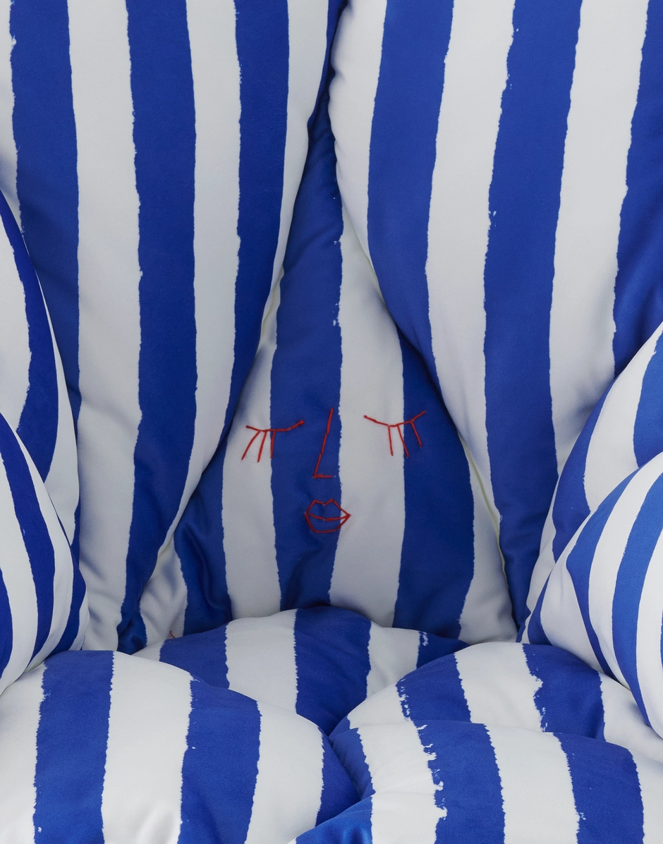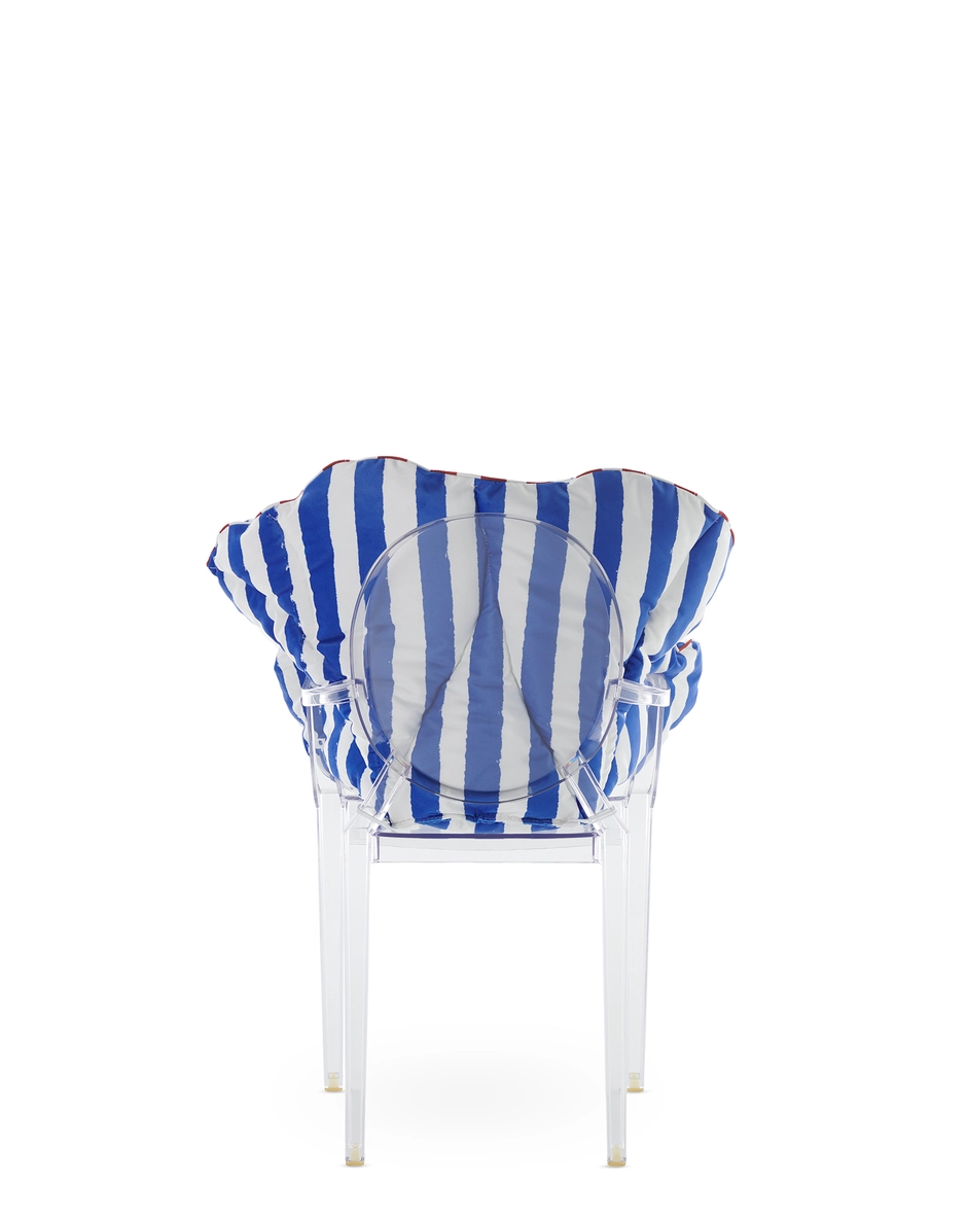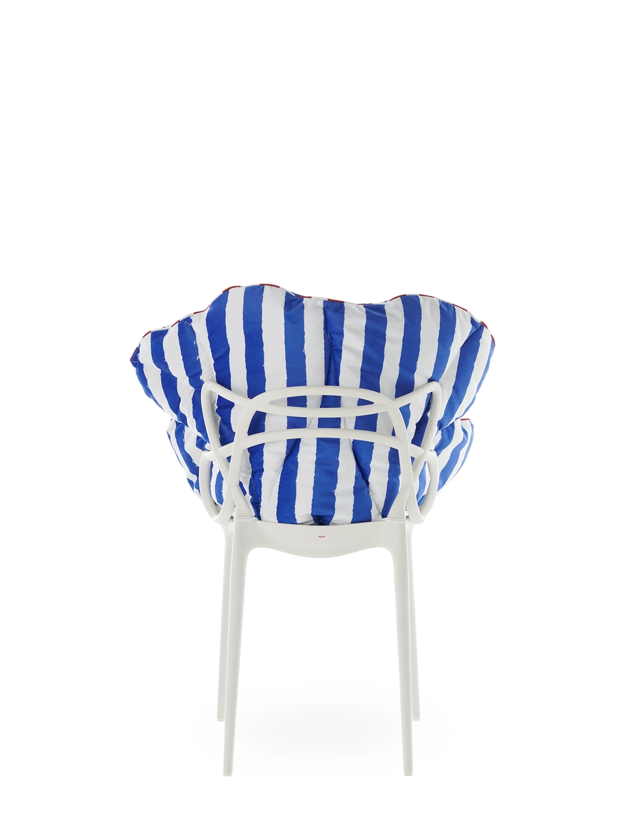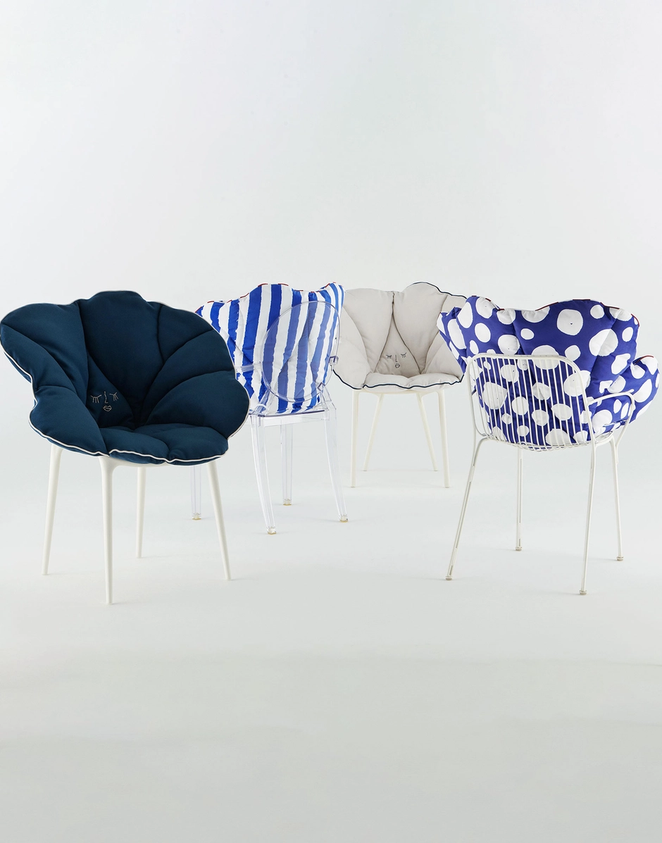 Die vielseitige und bequeme Kollektion „Alice’s Flowers“ ist in fünf Farbvarianten erhältlich: Gelb, Blau, Rosa, Rot, Weiß und zwei Streifen- und Punktemuster. Die Kissen sind so gestaltet, dass sie eine Auswahl an Meisterwerken in gepolsterte Sessel verwandeln: Masters, Louis Ghost, A.I., Venice, Hiray, Generic A und C.