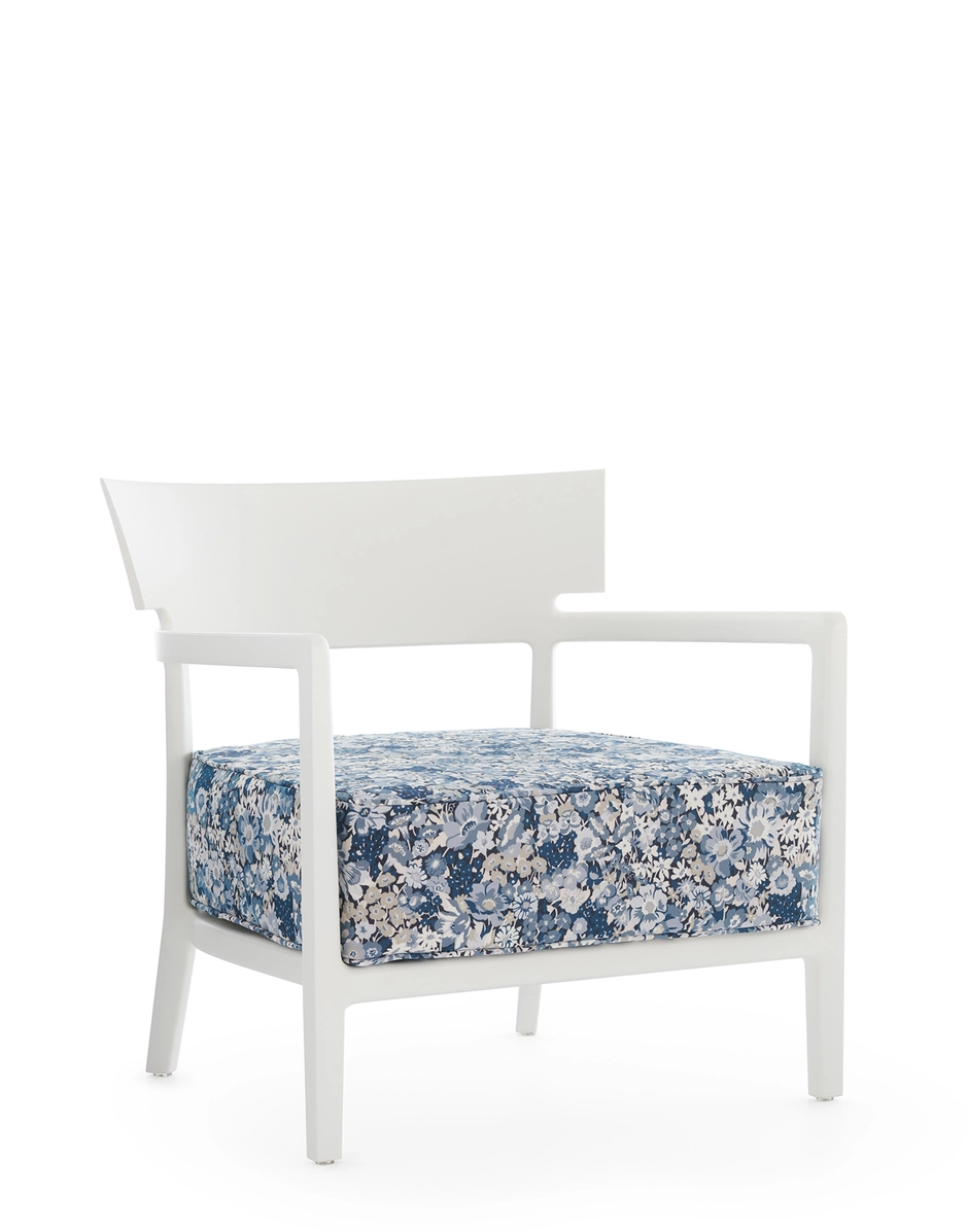 Dank der Verwendung von speziell für den Außenbereich entwickelten Liberty-Stoffen, präsentieren sich das Sofa Plastics, der Hocker Trix von Piero Lissoni und der Sessel Cara von Philippe Starck in einem völlig neuen Look. Diese Stoffe verleihen den Produkten eine neue ästhetische und funktionale Dimension und garantieren Widerstandsfähigkeit und Langlebigkeit auch im Außenbereich. Mit zwei geometrischen Mustern und einem Blumenmuster bietet diese Outdoor-Möbelkollektion eine einzigartige Mischung aus Stil und Komfort, sodass Sie den Sommer auf elegante und entspannte Weise erleben können. Jedes Stück, vom Sofa über das Klappsofa bis zum Sessel, wird so zu einer wertvollen Ergänzung, um Außenbereiche geschmackvoll und raffiniert einzurichten und gleichzeitig ein angenehmes Entspannungserlebnis im Freien zu bieten. Erhältlich in den Farbpaletten Salbei, Rost, Beige, Gelb und Blau.