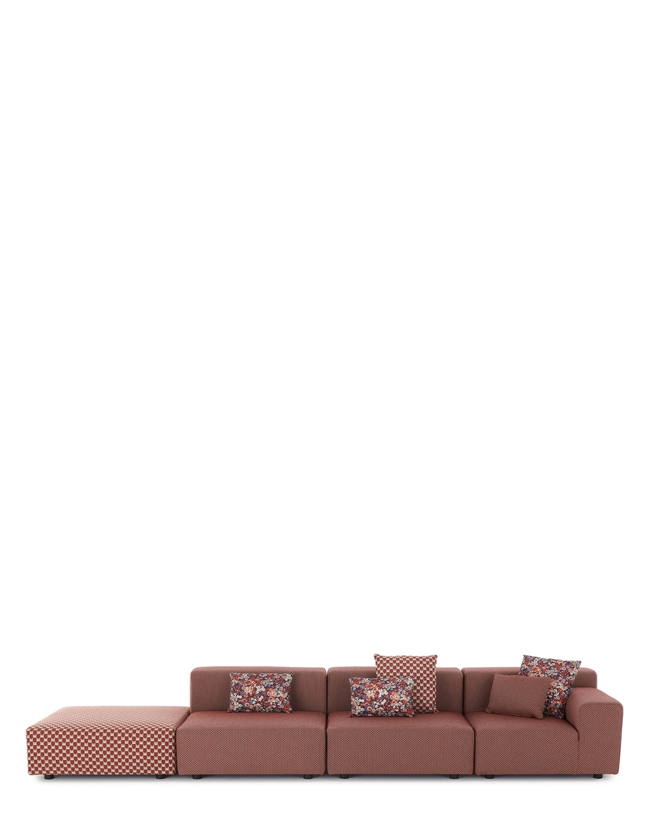 Dank der Verwendung von speziell für den Außenbereich entwickelten Liberty-Stoffen, präsentieren sich das Sofa Plastics, der Hocker Trix von Piero Lissoni und der Sessel Cara von Philippe Starck in einem völlig neuen Look. Diese Stoffe verleihen den Produkten eine neue ästhetische und funktionale Dimension und garantieren Widerstandsfähigkeit und Langlebigkeit auch im Außenbereich. Mit zwei geometrischen Mustern und einem Blumenmuster bietet diese Outdoor-Möbelkollektion eine einzigartige Mischung aus Stil und Komfort, sodass Sie den Sommer auf elegante und entspannte Weise erleben können. Jedes Stück, vom Sofa über das Klappsofa bis zum Sessel, wird so zu einer wertvollen Ergänzung, um Außenbereiche geschmackvoll und raffiniert einzurichten und gleichzeitig ein angenehmes Entspannungserlebnis im Freien zu bieten. Erhältlich in den Farbpaletten Salbei, Rost, Beige, Gelb und Blau.