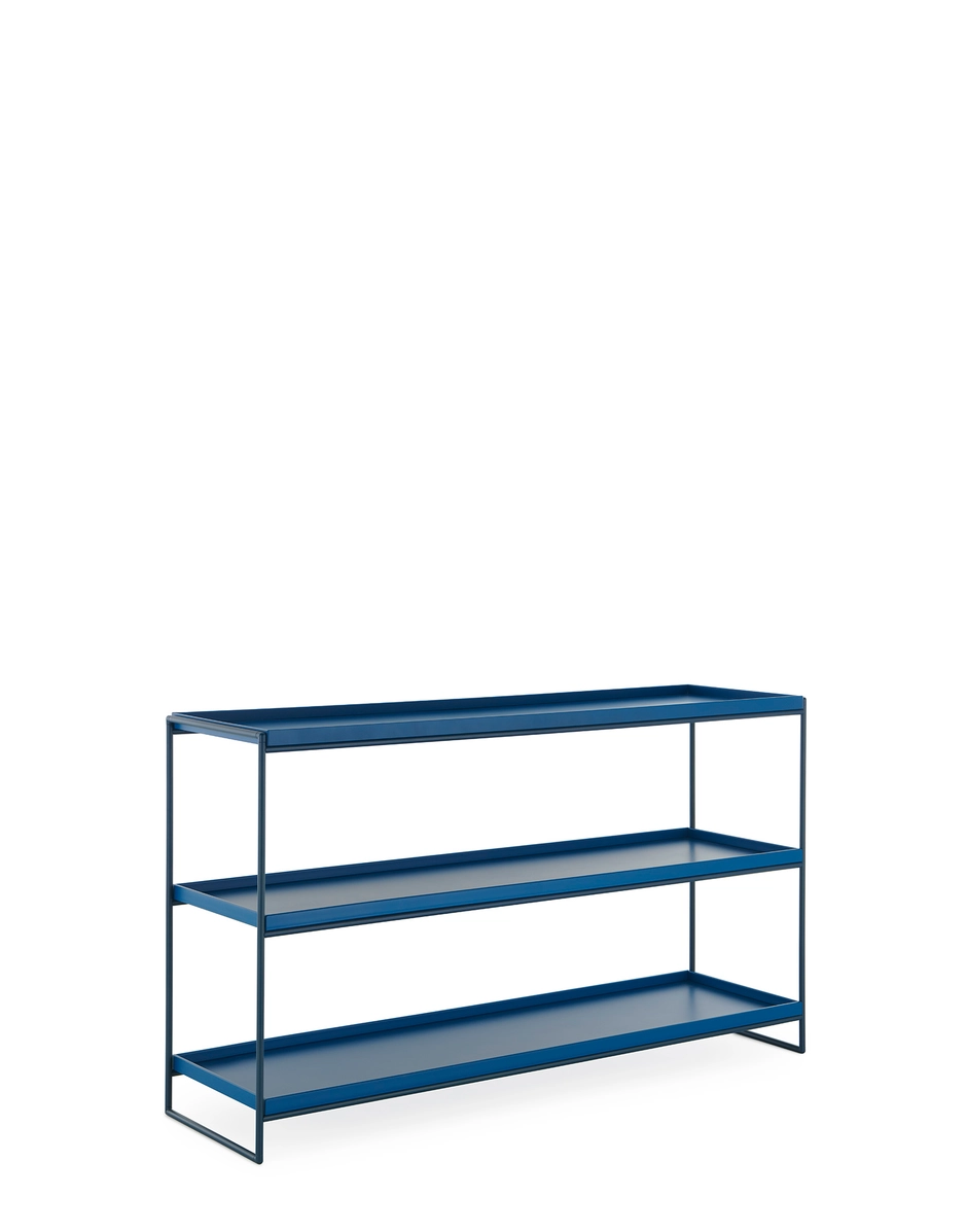 TRAYS ist ein komplexes Regalsystem für Zuhause oder das Büro. Die konstruktive Entwurfsidee besteht in der Abwandlung von kleinen Tischen und Regalsystemen, deren Platten in Design und Ausführung an lackierte japanische Tabletts erinnern. Die TRAYS-Kollektion entwickelt sich stetig weiter und bietet neue Höhen und Formen, die modernen Bedürfnissen und vielfältigen Funktionen gerecht werden. Das Konzept wird zudem durch eine neue Farbpalette bereichert, wobei das Metall der Struktur in Ton-in-Ton-Farbtönen angeboten wird.