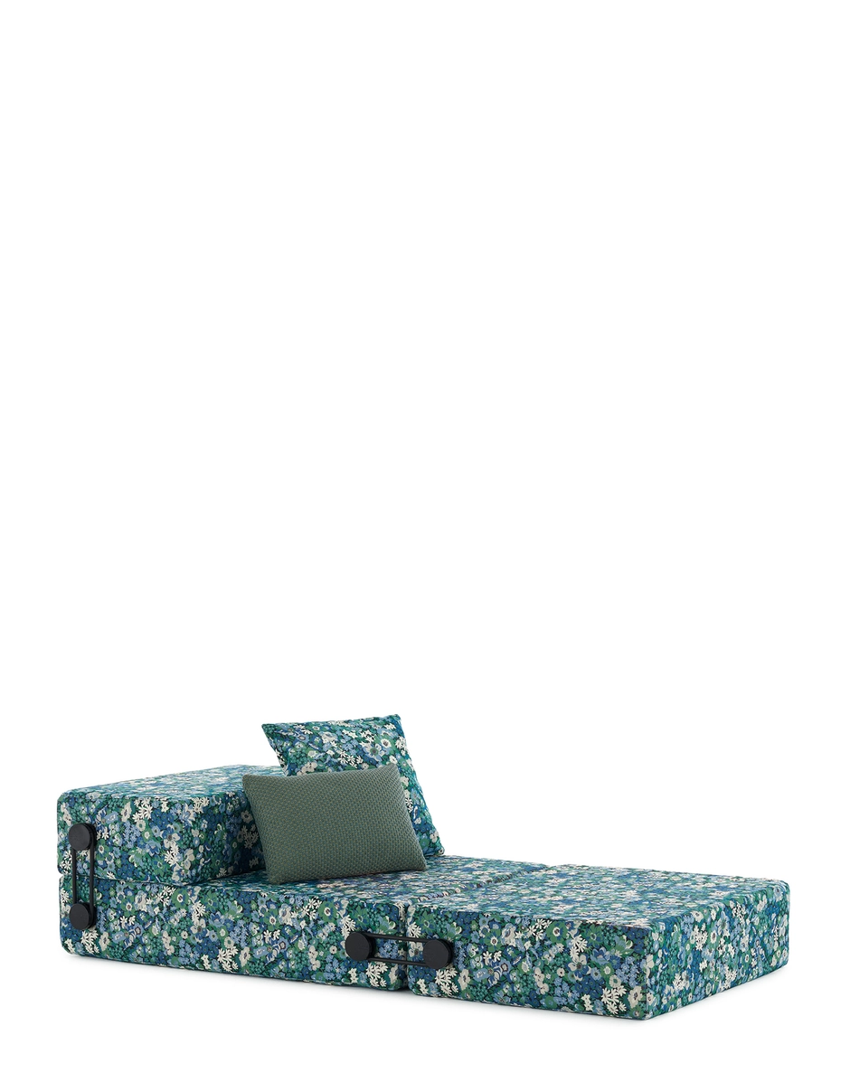Dank der Verwendung von speziell für den Außenbereich entwickelten Liberty-Stoffen, präsentieren sich das Sofa Plastics, der Hocker Trix von Piero Lissoni und der Sessel Cara von Philippe Starck in einem völlig neuen Look. Diese Stoffe verleihen den Produkten eine neue ästhetische und funktionale Dimension und garantieren Widerstandsfähigkeit und Langlebigkeit auch im Außenbereich. Mit zwei geometrischen Mustern und einem Blumenmuster bietet diese Outdoor-Möbelkollektion eine einzigartige Mischung aus Stil und Komfort, sodass Sie den Sommer auf elegante und entspannte Weise erleben können. Jedes Stück, vom Sofa über das Klappsofa bis zum Sessel, wird so zu einer wertvollen Ergänzung, um Außenbereiche geschmackvoll und raffiniert einzurichten und gleichzeitig ein angenehmes Entspannungserlebnis im Freien zu bieten. Erhältlich in den Farbpaletten Salbei, Rost, Beige, Gelb und Blau.