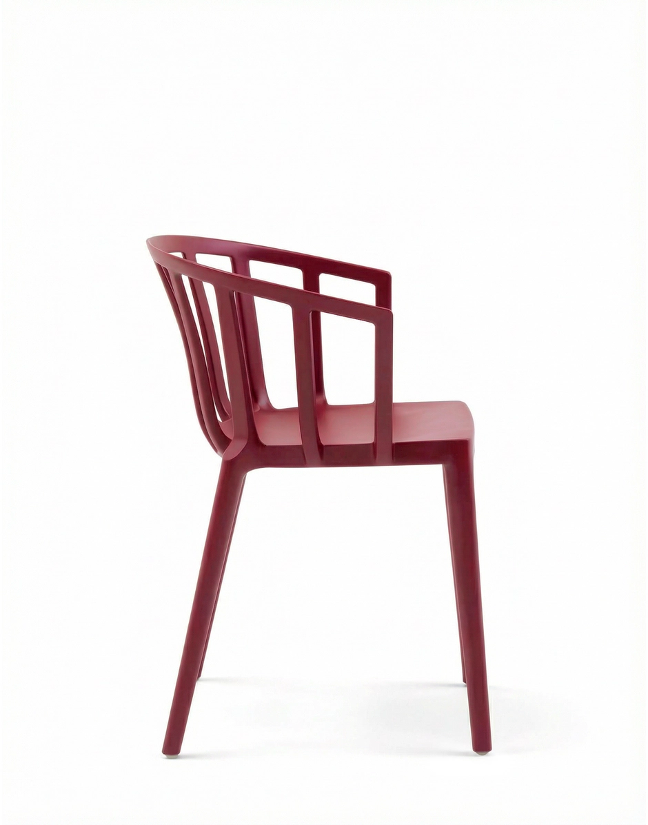 Eine Huldigung an die Stadt Venedig mit einem Stuhl, der sowohl als Sitzgelegenheit am Tisch als auch im Wohnzimmer verwendet werden kann und dank des Stils seiner Form, die mit einer neuen Interpretation der Stimmung der klassischen Stühle der historischen venezianischen Cafés hergestellt wird, klassische und bequeme Linien vereint. Venice ist sowohl für die Indoor- als auch die Outdoor-Verwendung geeignet.