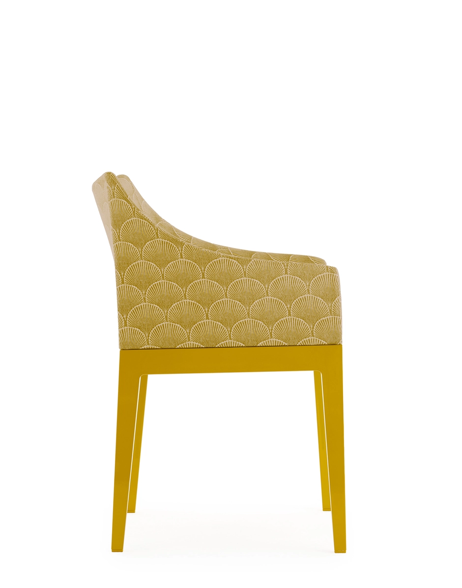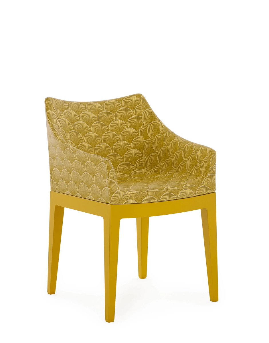 Madame, the famous by Philippe Starck is presented in a captivating combination of the Liberty “Fanfare” fabric with the new leg structures, proposed in the rich and enveloping tones of Mustard, Red and Blue, which are combined with the black and transparent version. A sublime encounter between tradition and modernity, which transforms every environment into a timeless work of art. “Fanfare”, is an extraordinary fabric inspired by a precious archive fragment dating back to the 1880s, characterized by a sophisticated geometric motif of Asian-style fans. The refined mix of colors and the particular weave of the material give this pattern a timeless elegance, making it perfect for reinterpreting the armchair