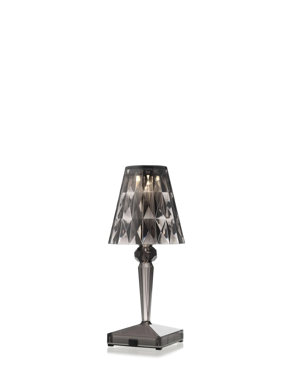 Battery is a compact table lamp innovatively characterised by the fact that it is 100% rechargeable thanks to a simple electric plug, with up to eight hours of battery life. This makes it easy to move, ideal for temporary contract set-ups, for use in cafés or in open air restaurants.