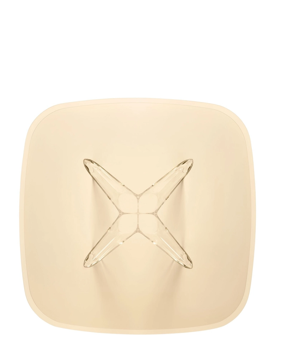 The Sir Gio table is characterised by a central leg created using a high-tech mould: the moulded plastic material conveys high performance and stability to support the glass top. The table offers the chance to combine different coloured bases and tops, for a wide range of different solutions.