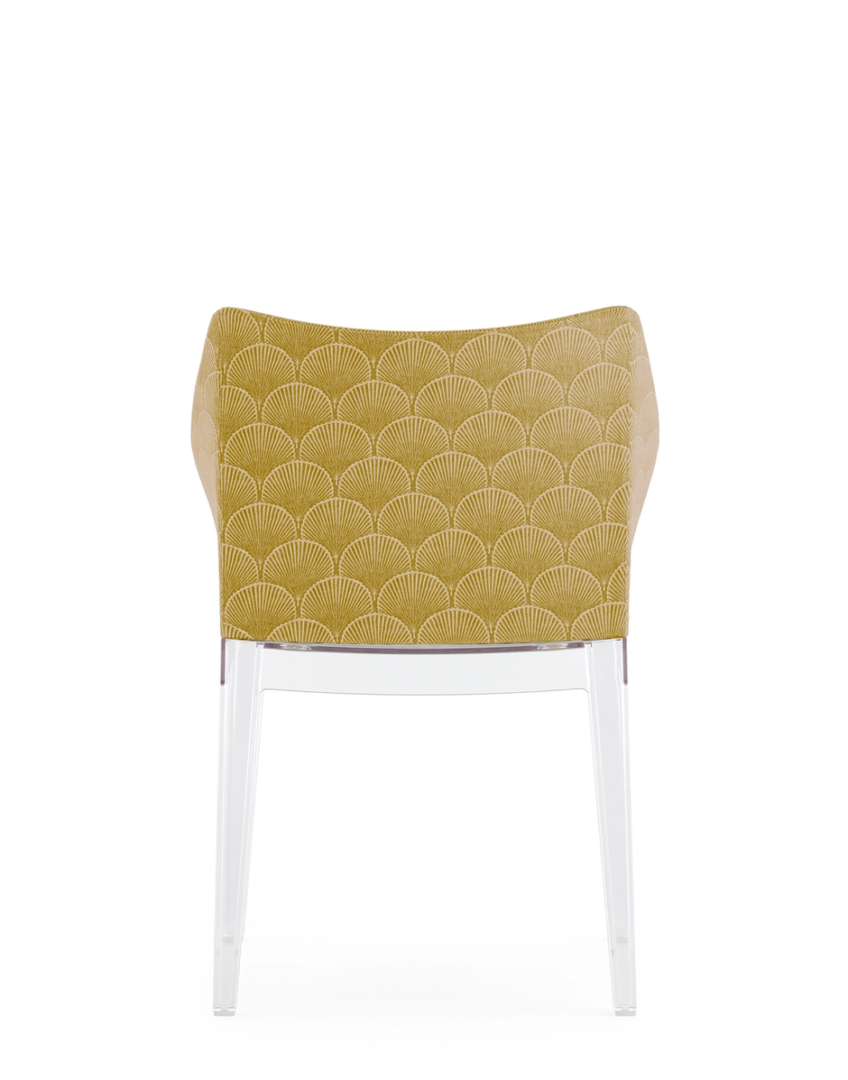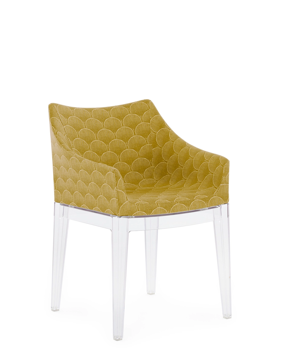 Madame, the famous by Philippe Starck is presented in a captivating combination of the Liberty “Fanfare” fabric with the new leg structures, proposed in the rich and enveloping tones of Mustard, Red and Blue, which are combined with the black and transparent version. A sublime encounter between tradition and modernity, which transforms every environment into a timeless work of art. “Fanfare”, is an extraordinary fabric inspired by a precious archive fragment dating back to the 1880s, characterized by a sophisticated geometric motif of Asian-style fans. The refined mix of colors and the particular weave of the material give this pattern a timeless elegance, making it perfect for reinterpreting the armchair