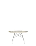A family of tables ideal for the home and office. The light steel structure is made particular by the use of the cross element that joins the legs on each of the four sides, supporting the top. The collection comprises square, oval and round versions.