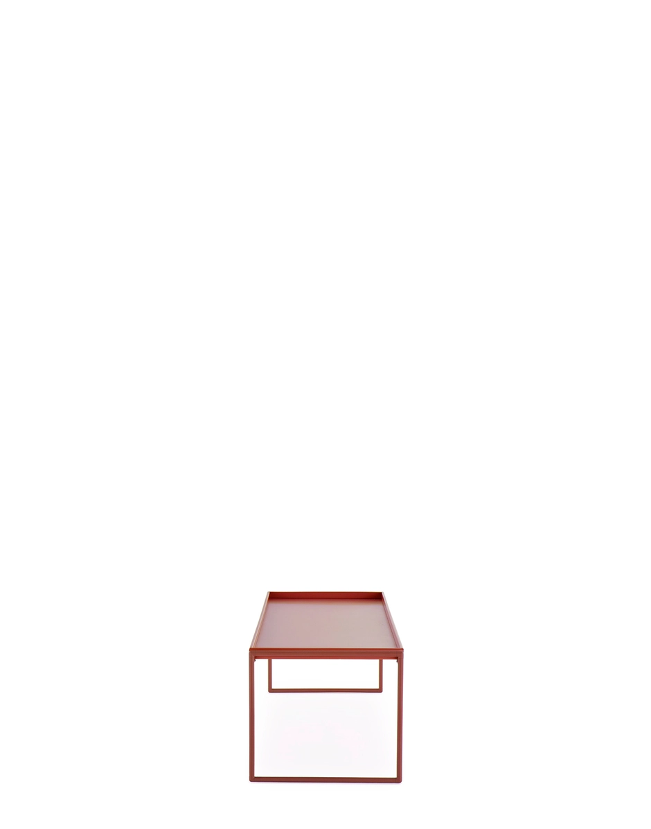 TRAYS is a versatile shelving system for home or office use. The concept is that of a set of tables, trolleys and shelves with surfaces inspired by traditional Japanese lacquered trays in both design and finish. The TRAYS collection is now bigger than ever, with new heights and shapes covering a wider range of modern needs and functionalities. TRAYS also boasts a new colour palette, with metal frames now in tone on tone shades.