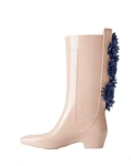 Barbarella offers a very feminine alternative to rain boots. The boots are made of soft rubber and reflect the classic stitching of the skin along the leg. For a more exuberant and glamorous style, a variant with 3D flowers applied and made of rubber was also created, with different possible color combinations.