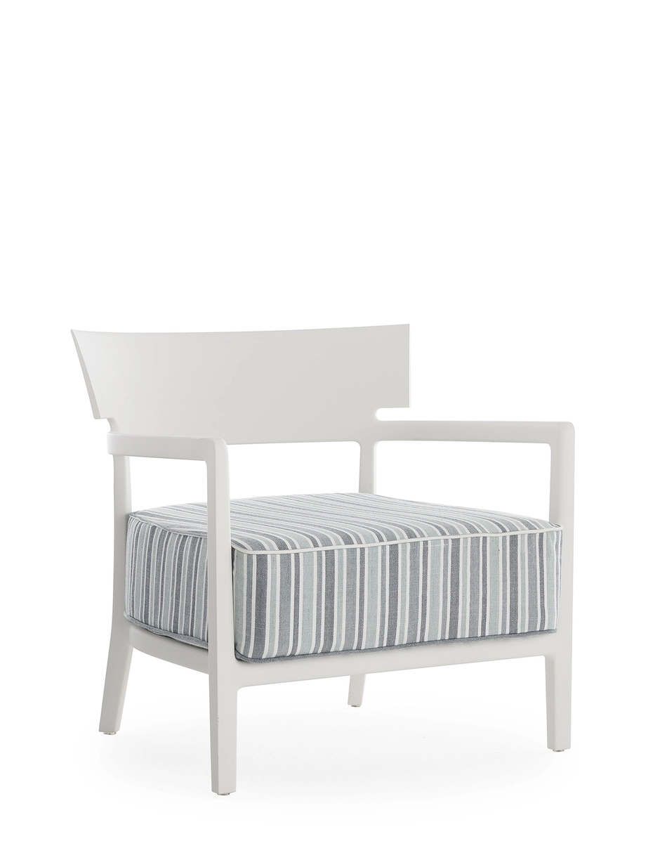 In Cara armchair, classically rigorous lines surround a comfortable seat. The perfect combination of formalism and technological innovation, for an original product with an industrial vibe that extends Kartell's range of soft furnishings.