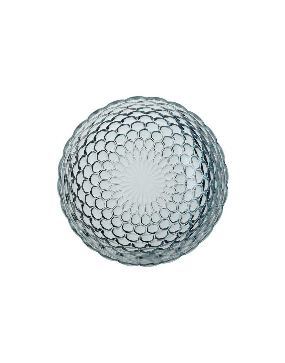 A comprehensive line of plates, trays, glasses, bowls, carafes, coffee cups and sugar bowls. The line's individuality is down to the fact that each model presents a different pattern inspired by the moulds that were once used for making jellies. The overlapping sections and colourful juxtapositions create an imaginative yet discreet ensemble that is both creative and sophisticated.