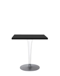 The TopTop table line is distinguished by its leg which can be either a round or square transparent section with a multi-faceted surface and metal core.
