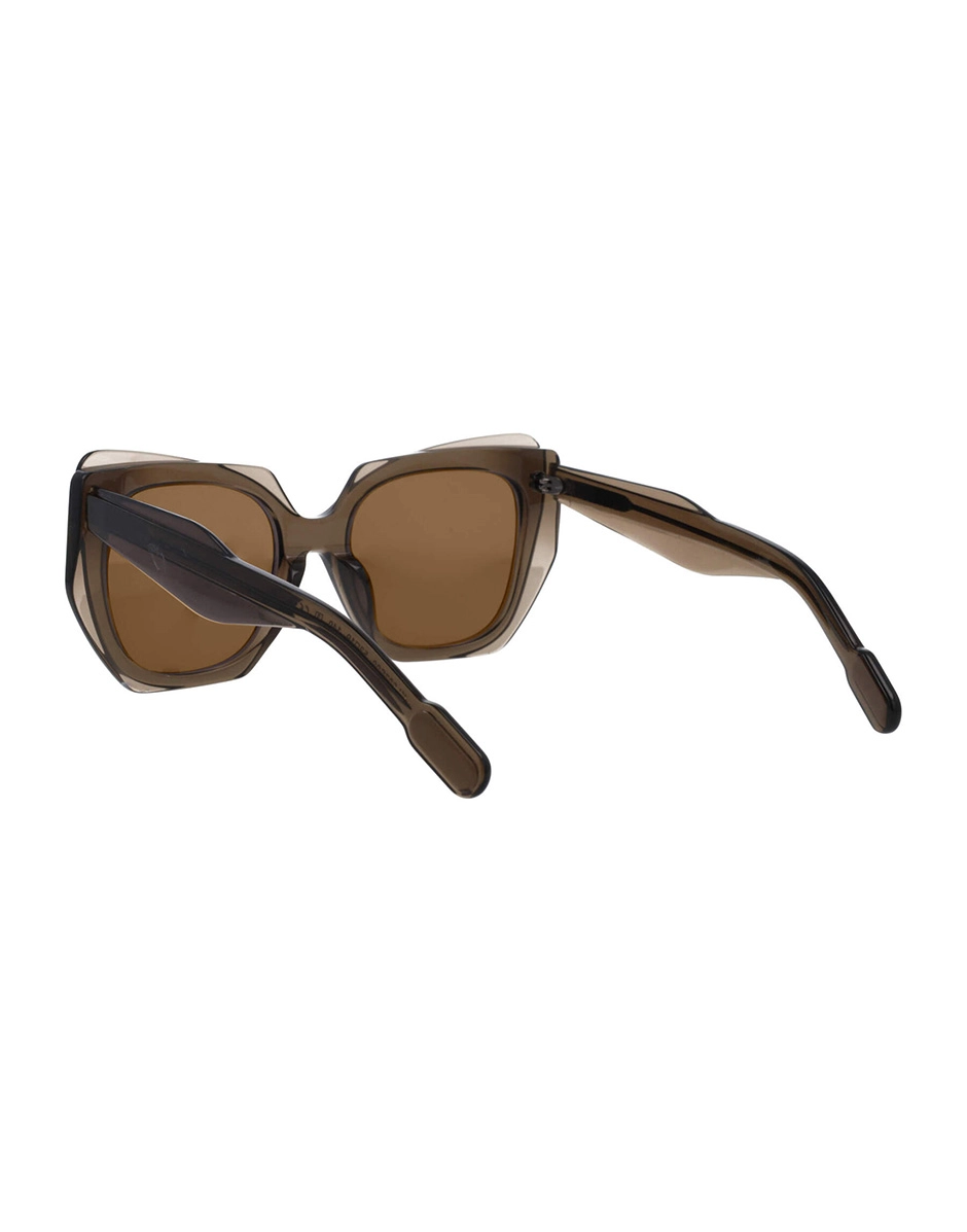 Uno + Uno = Tre es la primera idea que generó la colección Kartell Eyewear. Lamina nace de la combinación de dos siluetas distintas pero armoniosas que se fusionan para dar vida a un tercer signo gráfico que, en un juego de superposiciones, genera múltiples dimensiones según los ángulos de luz y las distintas tonalidades de color generadas por la combinación. de materiales transparentes. La contaminación de formas y espesores remite a los productos más icónicos de Kartell con una clara referencia a la tecnología productiva de la marca.