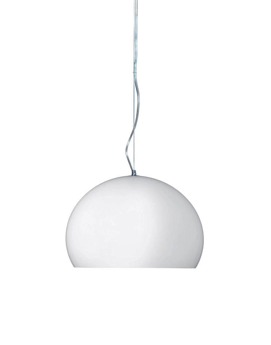 FL/Y es una lámpara colgante de líneas esenciales. La particular transparencia del material y el brillo de los colores recuerda los destellos que produce una burbuja de jabón con los reflejos de la luz. Además, la pantalla no es perfectamente semiesférica, sino que el plano de intersección queda por debajo de la altura del diámetro para recoger la mayor cantidad de luz. La lámpara está disponible en tres medidas diferentes: Fl/Y (diámetro de 52 cm y altura de la pantalla de 33 cm), Small Fl/Y (diámetro de 38 cm y altura de la pantalla de 28 cm) y Big Fl/Y (diámetro de 83 cm y altura de la pantalla de 55 cm).