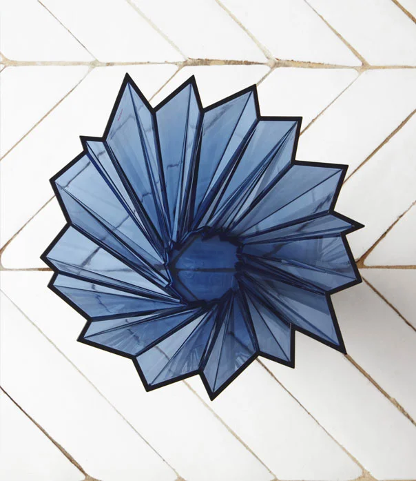 Un vaso dalle molteplici facce che si allarga dalla base alla sommità con un movimento vorticoso. Shanghai gioca con lampi e ombre, creando forme geometriche irregolari