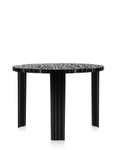 A line of tables in three heights. The surface of the T-table top alternates fullness and space to create an elegant and precious effect which is reminiscent of embroidery.