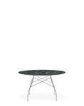 A family of tables ideal for the home and office. The light steel structure is made particular by the use of the cross element that joins the legs on each of the four sides, supporting the top. The collection comprises square, oval and round versions.