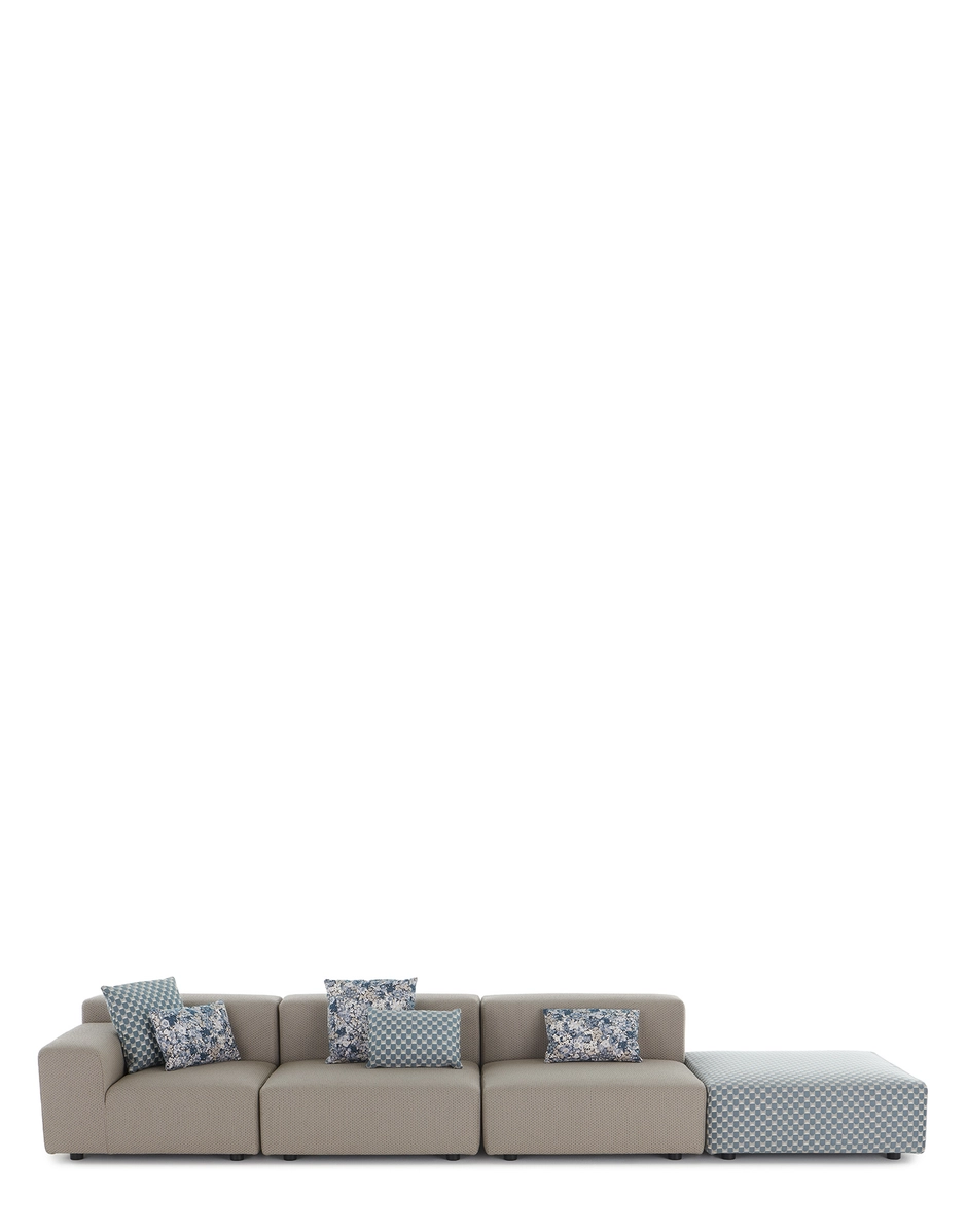 The Plastics sofa and Trix pouffe by Piero Lissoni and Philippe Starck’s Cara armchair will gain a new look thanks to the use of Liberty fabrics that are specially made for outdoor use. These fabrics add both style and functionality and guarantee strength and durability in outdoor applications. Available in two geometric patterns and one floral pattern, this new collection of outdoor furniture offers a unique mix of style and comfort, and lets you enjoy the summer in an elegant, relaxed fashion. In these new fabric coverings, each piece, from the sofa to the pouffe and armchair, becomes a precious addition to your outdoor life, contributing taste and refinement and offering a delightfully relaxed open-air experience. Available in sage, rust, beige, yellow and blue colour palettes.