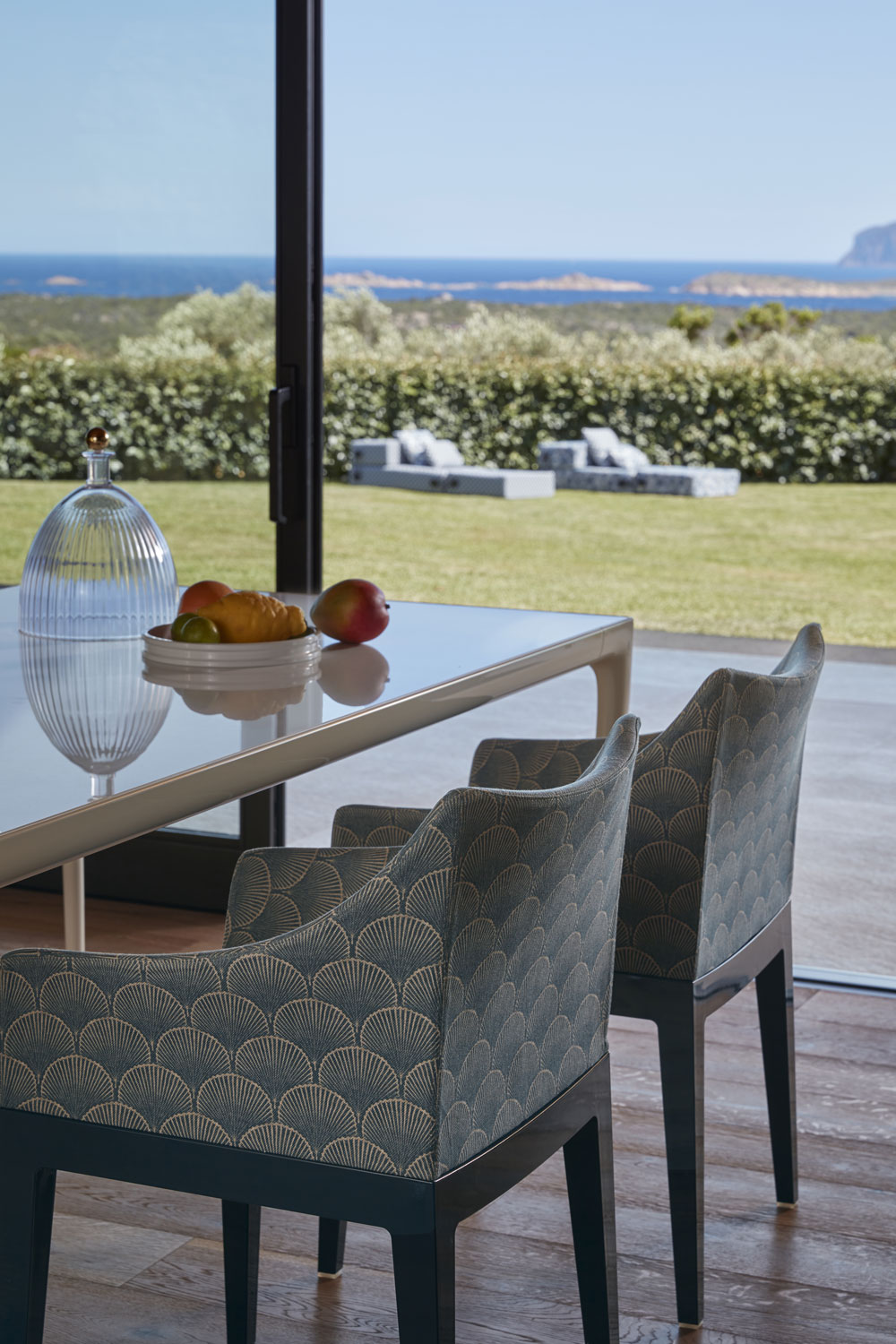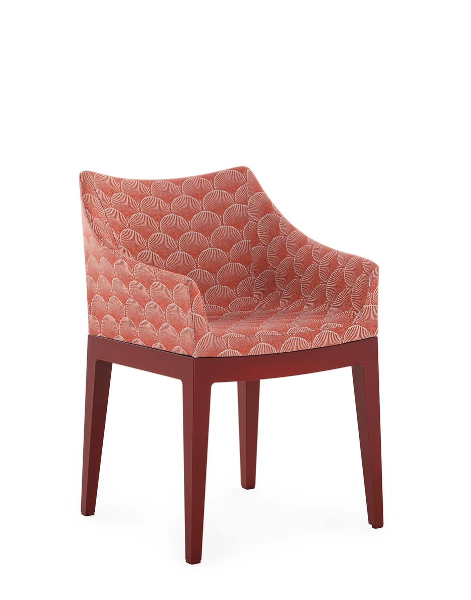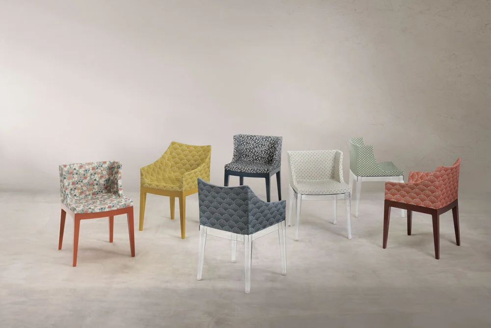 Madame, the famous by Philippe Starck is presented in a captivating combination of the Liberty “Fanfare” fabric with the new leg structures, proposed in the rich and enveloping tones of Mustard, Red and Blue, which are combined with the black and transparent version. A sublime encounter between tradition and modernity, which transforms every environment into a timeless work of art. “Fanfare”, is an extraordinary fabric inspired by a precious archive fragment dating back to the 1880s, characterized by a sophisticated geometric motif of Asian-style fans. The refined mix of colors and the particular weave of the material give this pattern a timeless elegance, making it perfect for reinterpreting the armchair
