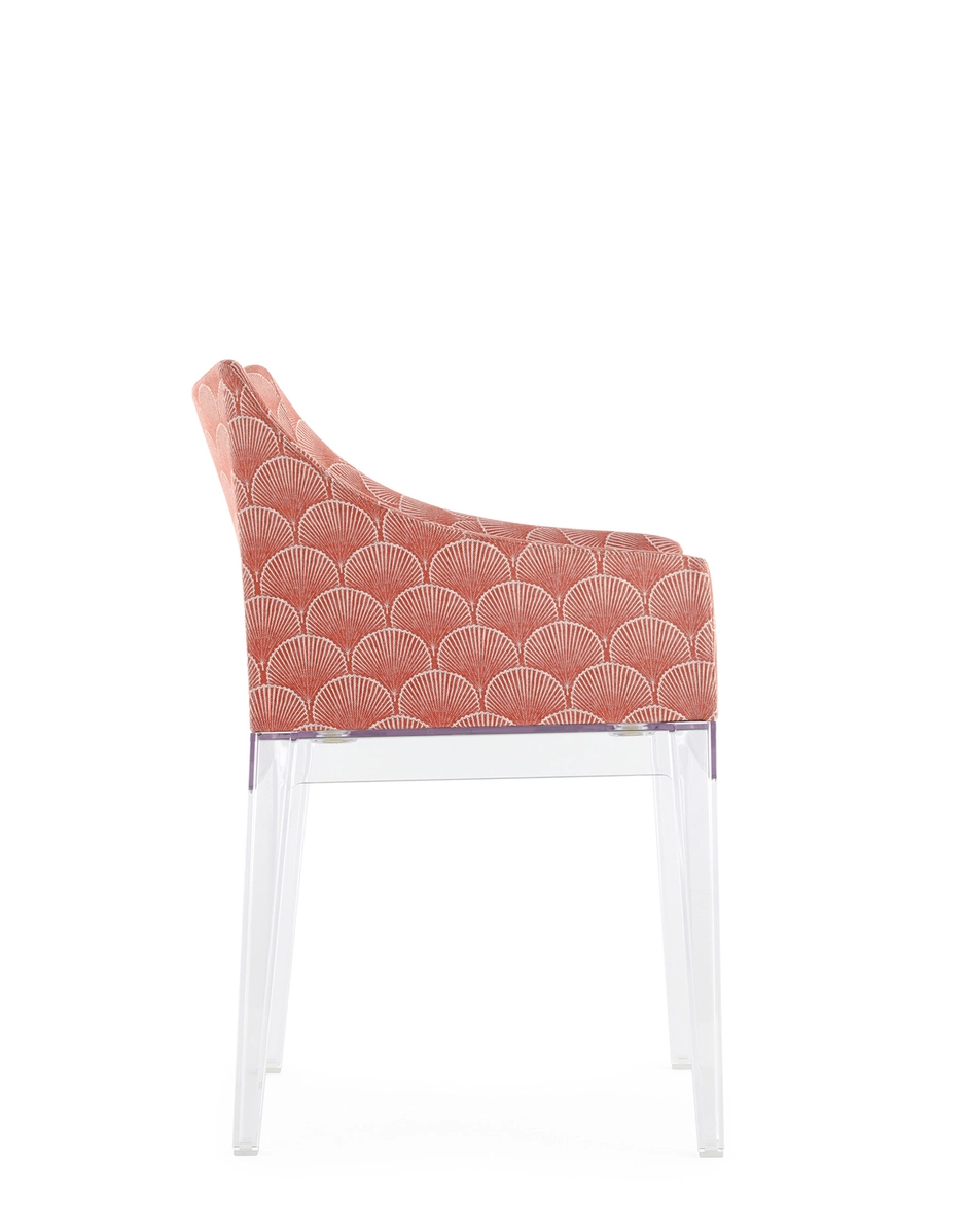 Madame, the famous by Philippe Starck is presented in a captivating combination of the Liberty “Fanfare” fabric with the new leg structures, proposed in the rich and enveloping tones of Mustard, Red and Blue, which are combined with the black and transparent version. A sublime encounter between tradition and modernity, which transforms every environment into a timeless work of art. “Fanfare”, is an extraordinary fabric inspired by a precious archive fragment dating back to the 1880s, characterized by a sophisticated geometric motif of Asian-style fans. The refined mix of colors and the particular weave of the material give this pattern a timeless elegance, making it perfect for reinterpreting the armchair