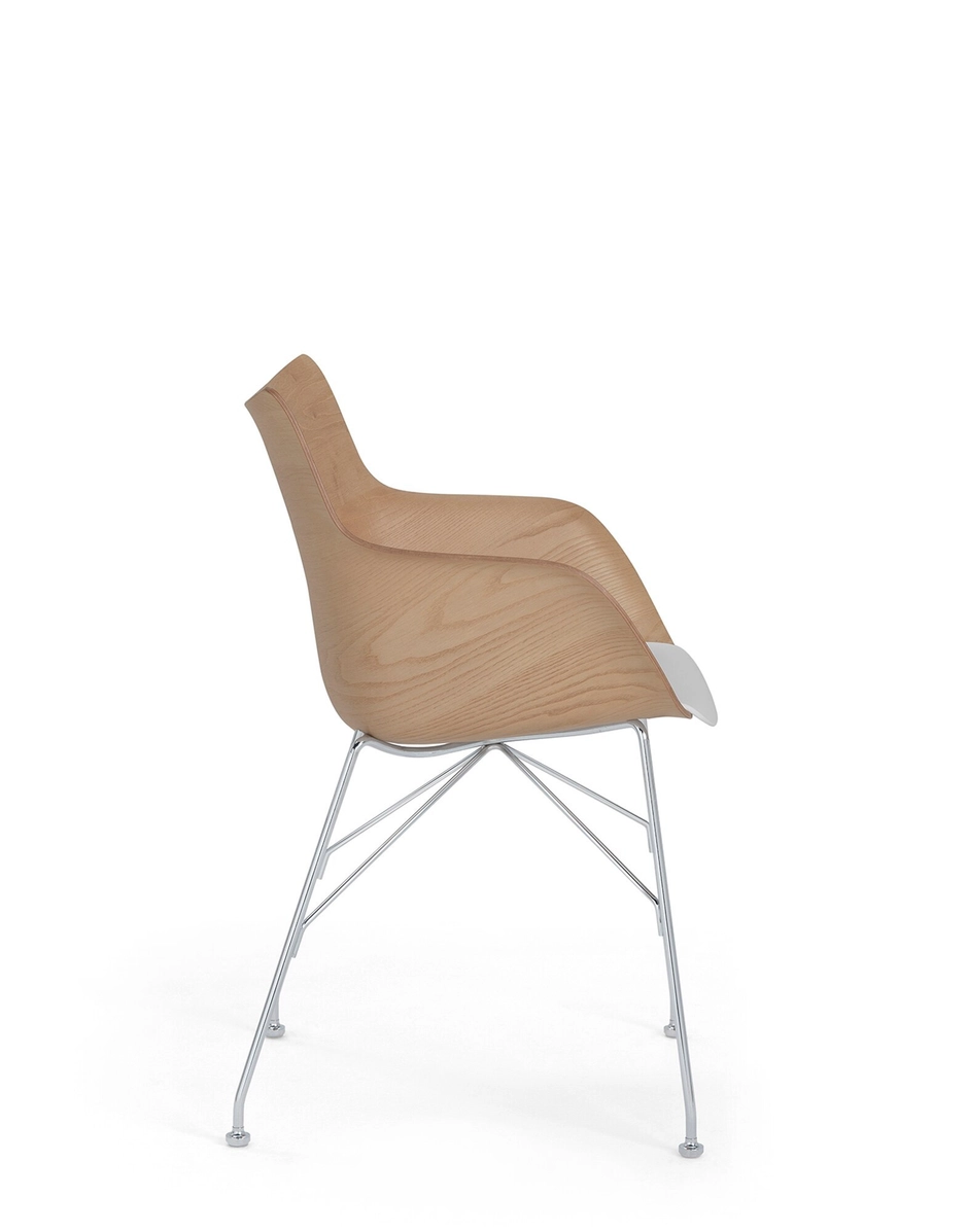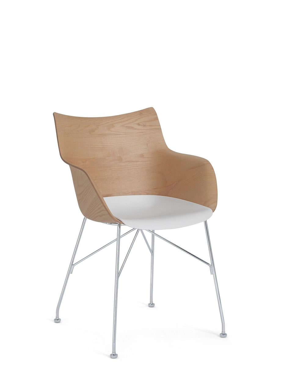 Q/Wood is the armchair from the Smart Wood collection, with enveloping lines that create soft armrests and offer maximum seating comfort. Using patented technology, the wood is worked with a mould designed to bring the curvature of the panel to the very edges, creating a seat with sinuous roundness.