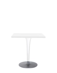 The TopTop table line is distinguished by its leg which can be either a round or square transparent section with a multi-faceted surface and metal core.