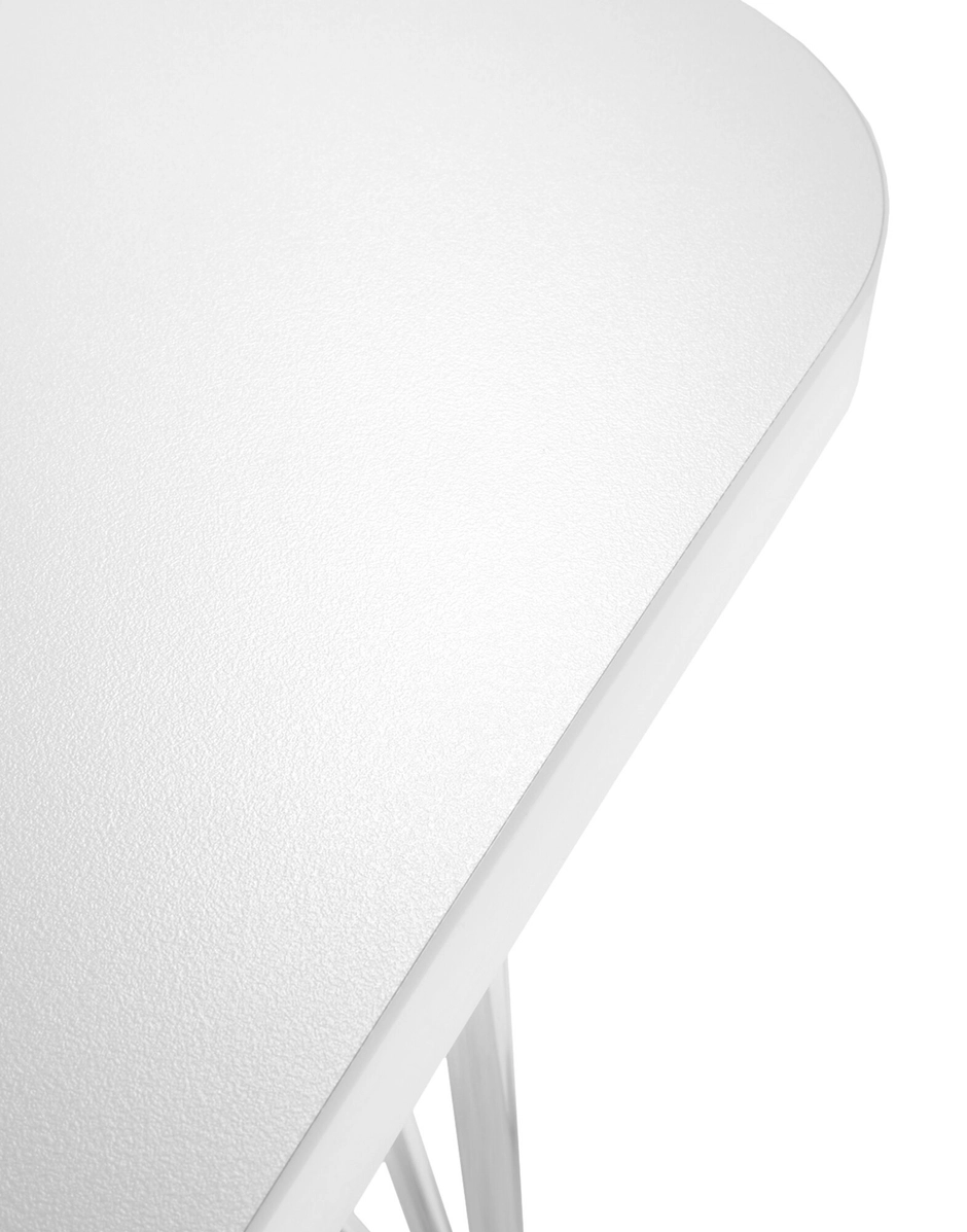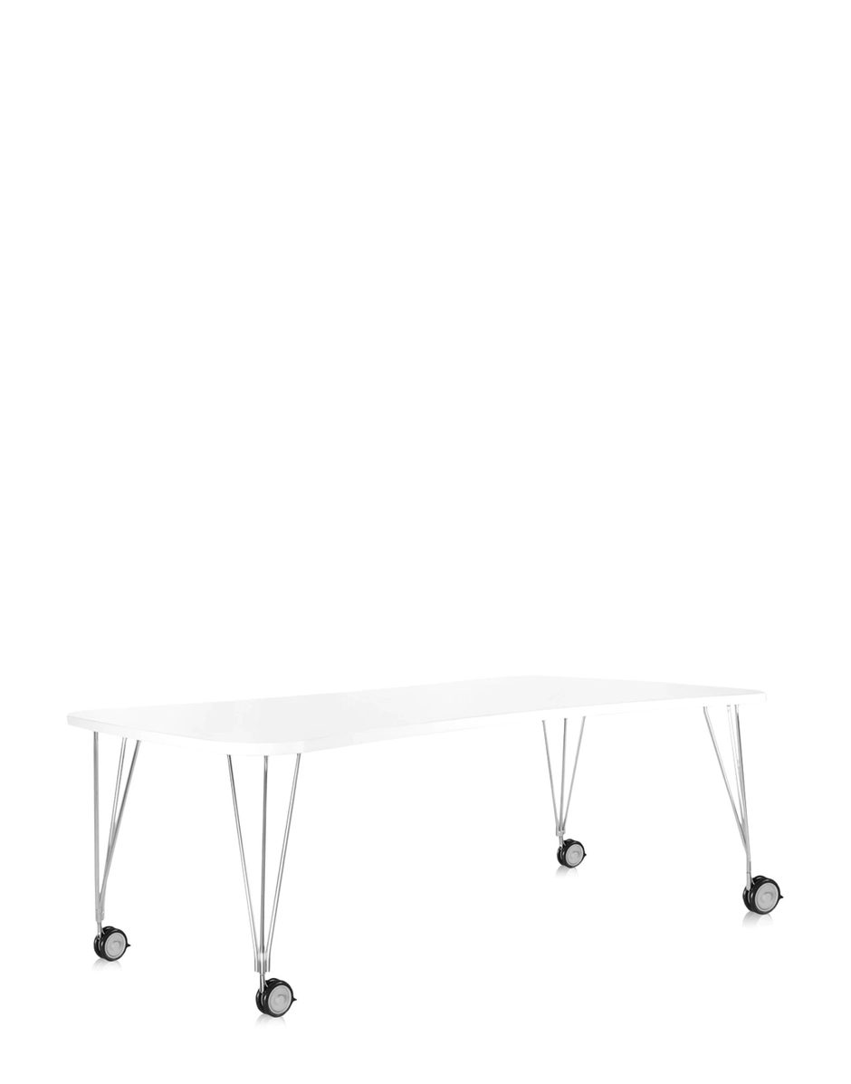 This study table was born for the office. The gentle, hourglass shape allows Max to sit side-by-side with tables of the same type as well as with other office furnishings. It can stand alone as a single workstation or together with companion pieces, creating work islands for open office spaces. The match-up combinations are easy and quick, thanks to its lightness and mobility, as demonstrated by the leg structures. Three metal tubes in chromed steel join at the base to form castors or feet. The castors are also equipped with auto-lock brakes for stability.