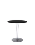 The TopTop table line is distinguished by its leg which can be either a round or square transparent section with a multi-faceted surface and metal core.