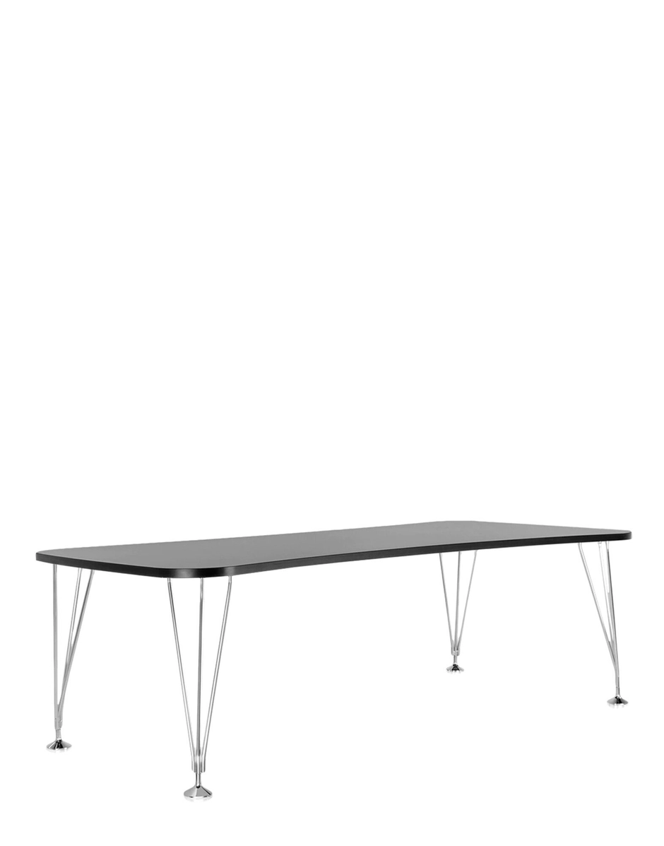 This study table was born for the office. The gentle, hourglass shape allows Max to sit side-by-side with tables of the same type as well as with other office furnishings. It can stand alone as a single workstation or together with companion pieces, creating work islands for open office spaces. The match-up combinations are easy and quick, thanks to its lightness and mobility, as demonstrated by the leg structures. Three metal tubes in chromed steel join at the base to form castors or feet. The castors are also equipped with auto-lock brakes for stability.