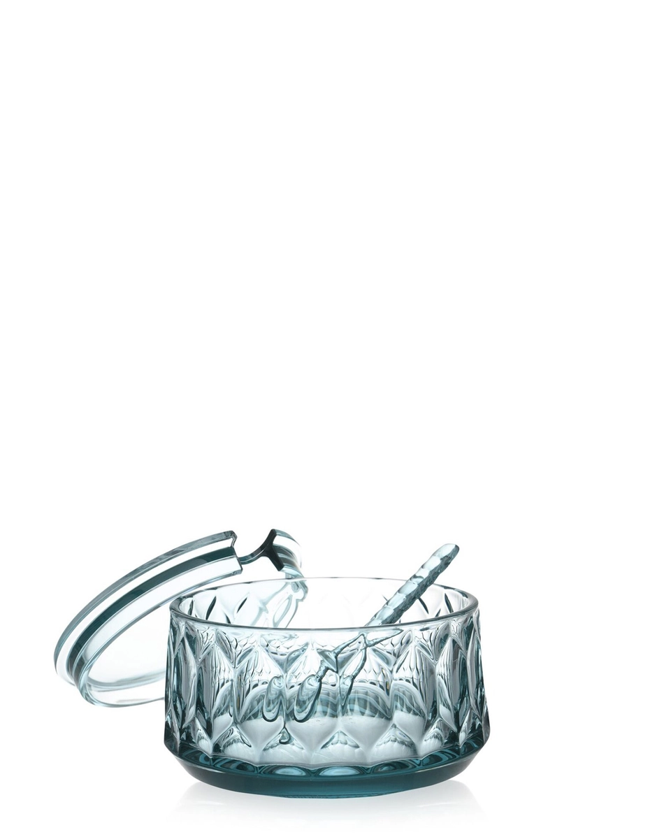 Une riche gamme d’assiettes, de plateaux, de verres, de bols, de carafes, de tasses à café et sucriers. La particularité de cette collection vient du fait que chaque modèle présente un motif différent s'inspirant aux moules qui servaient autrefois à faire les gélatines. Les superpositions des assiettes et les assortiments de couleurs créent un ensemble extroverti mais discret, à la fois créatif et sophistiqué.