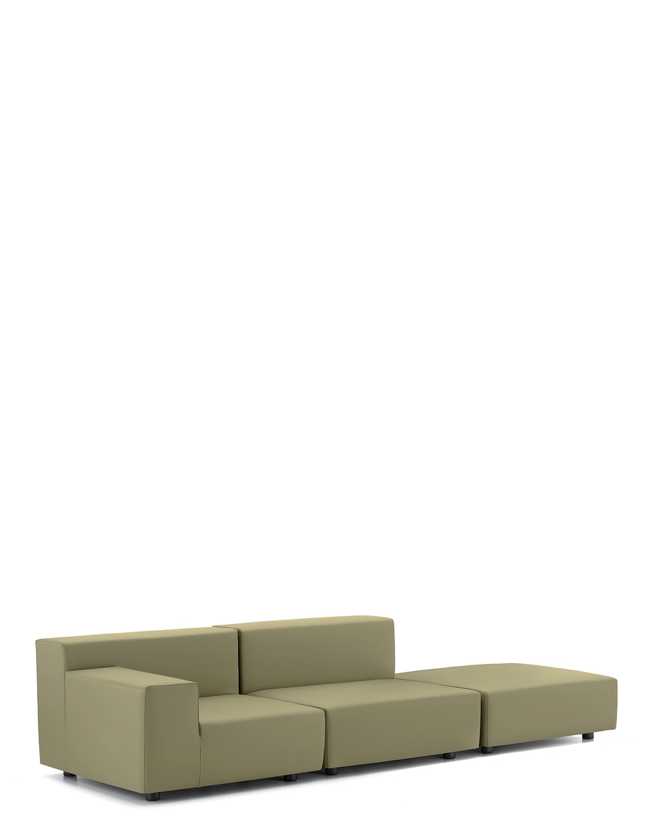 Dessiné par Piero Lissoni en 2003, le canapé Plastics est présenté dans une nouvelle version en écocuir recyclable, atoxique, écologique et résistante aux taches. Le nouveau tissu se décline en six tonalités : blanc, noir, gris tourterelle, vert sauge, poudre et brique.