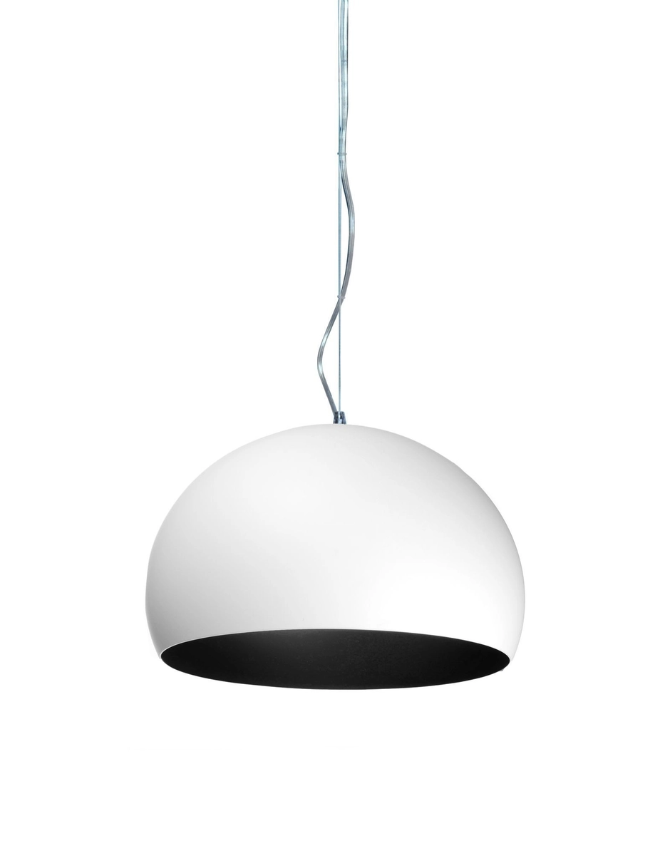 FL/Y est une lampe à suspension aux lignes essentielles. La transparence particulière du matériau et la brillance des couleurs donnent l’idée d’une bulle de savon chatoyant aux reflets de la lumière. Par ailleurs, la calotte n’est pas parfaitement hémisphérique, le plan sécant passe au-dessous du diamètre pour recueillir un maximum de lumière. La lampe est disponible en trois tailles différentes : Fl/Y (Ø 52 cm, hauteur du diffuseur 33 cm), Small Fl/Y (Ø 38 cm, hauteur du diffuseur 28 cm) et Big Fl/Y (Ø 83 cm, hauteur du diffuseur 55 cm).