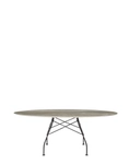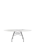 A family of tables ideal for the home and office. The light steel structure is made particular by the use of the cross element that joins the legs on each of the four sides, supporting the top. The collection comprises square, oval and round versions.