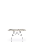 A family of tables ideal for the home and office. The light steel structure is made particular by the use of the cross element that joins the legs on each of the four sides, supporting the top. The collection comprises square, oval and round versions.